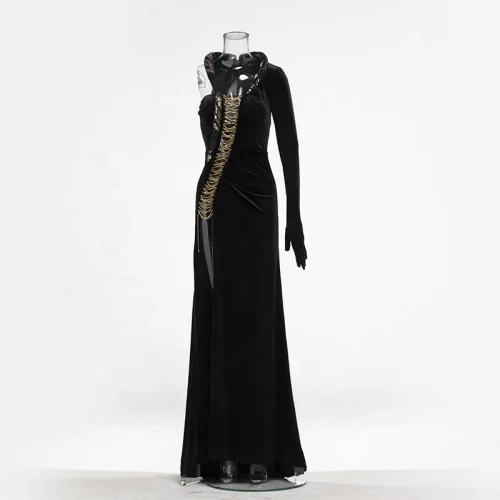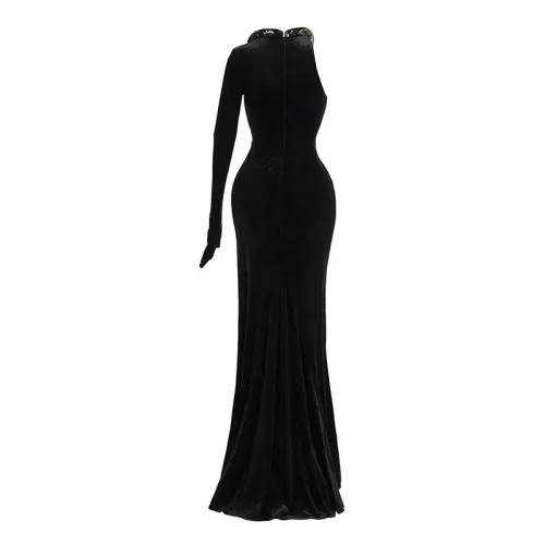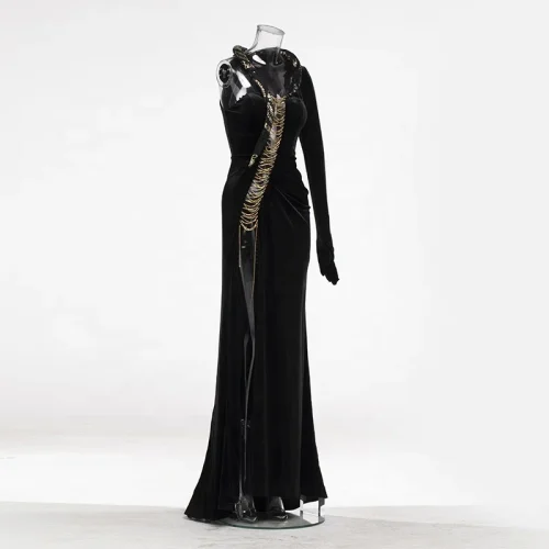 Aristocratic Premium One Shoulder Long Sequins Beaded High Split Dress Asymmetric Club Formal Prom Cocktail Trendy Evening Gowns