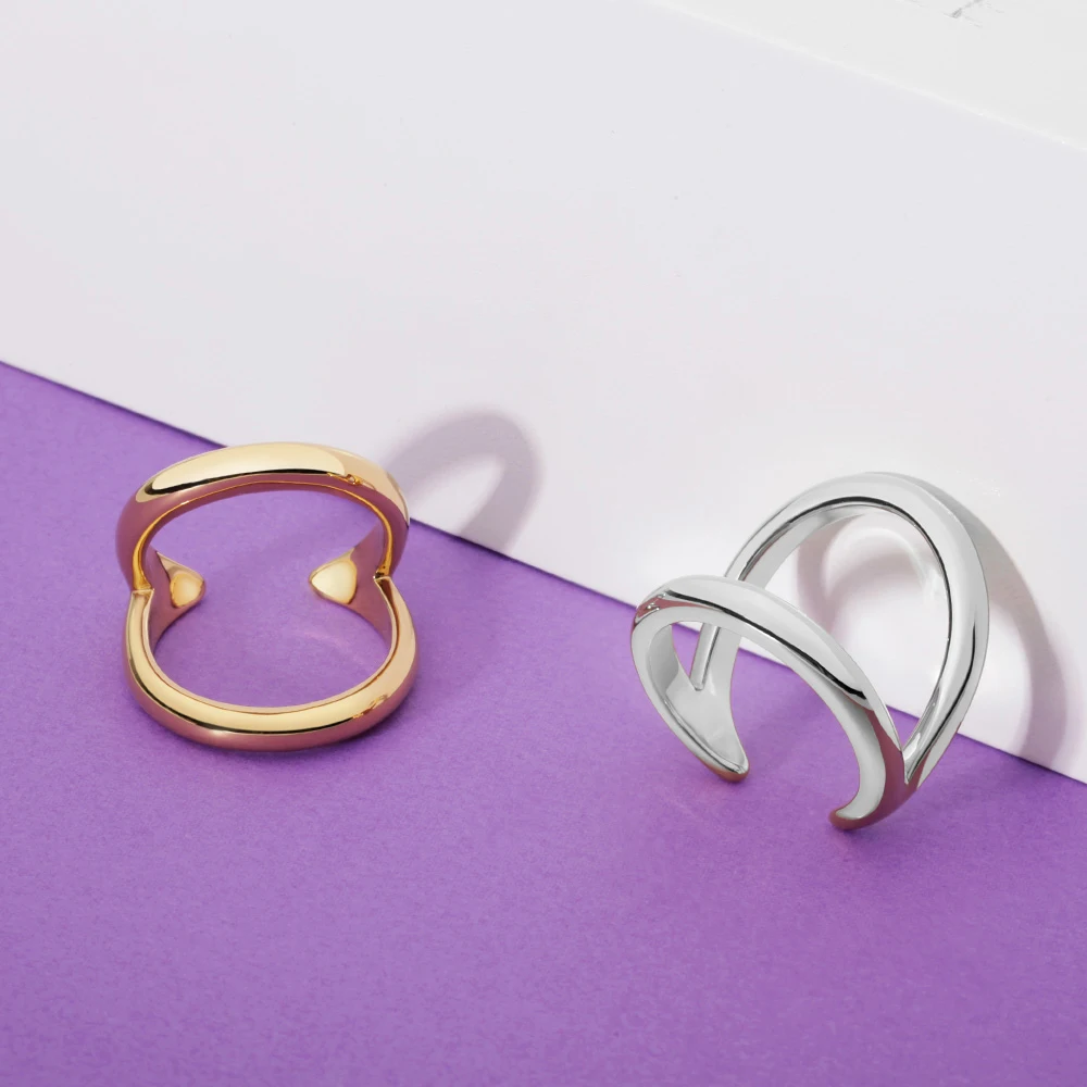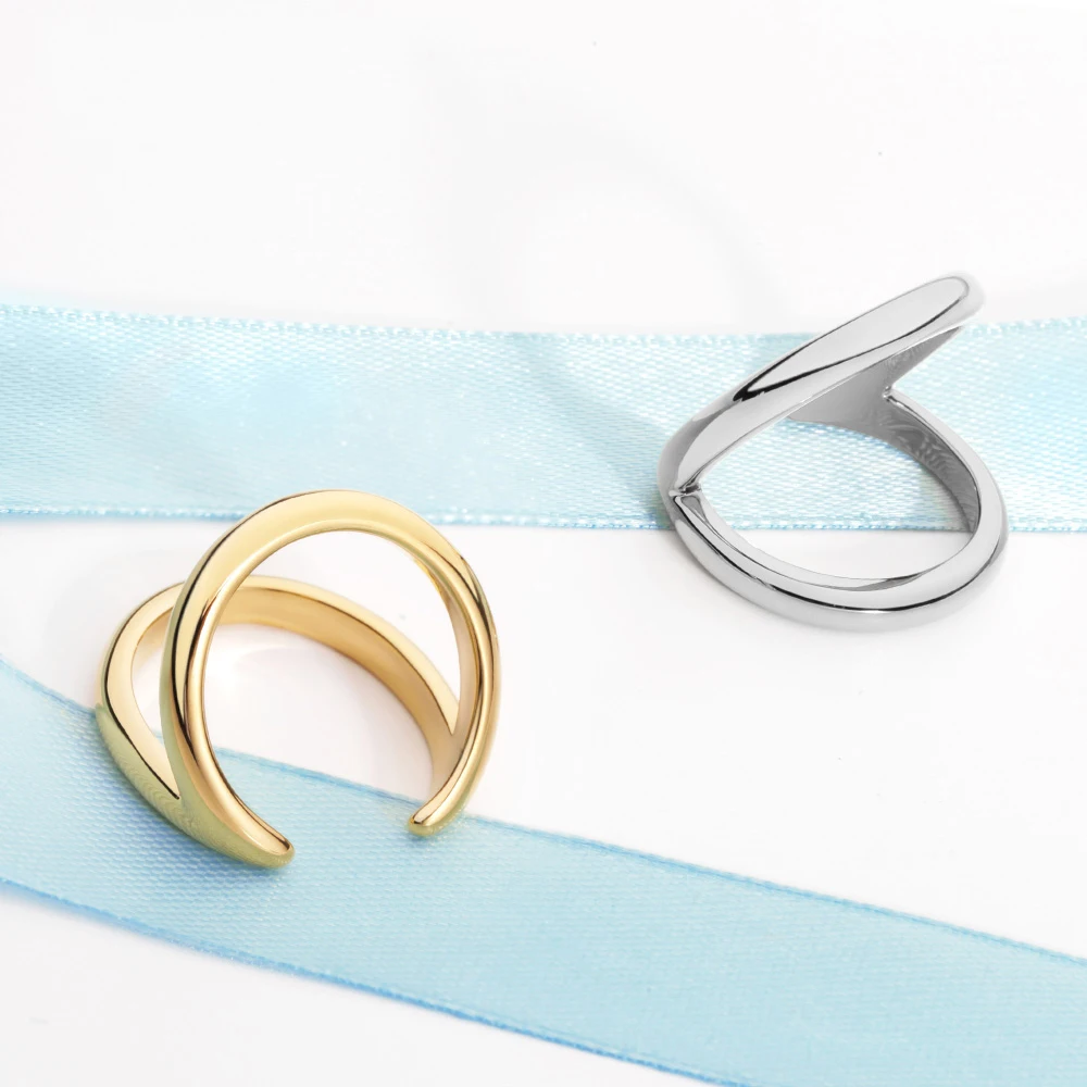 Product Name: Avant-Garde Ladies Rings 18K Gold Double-Colored Elegant Engagement Jewelry with Brass Main Inlaid Trendy Style Luxury Packaging