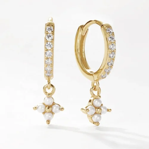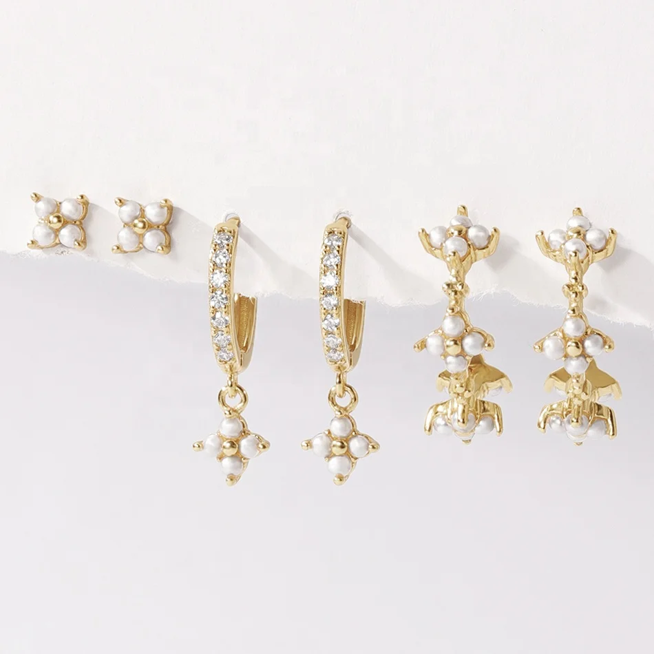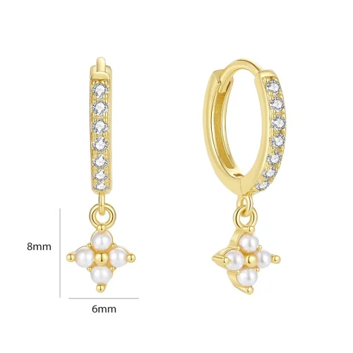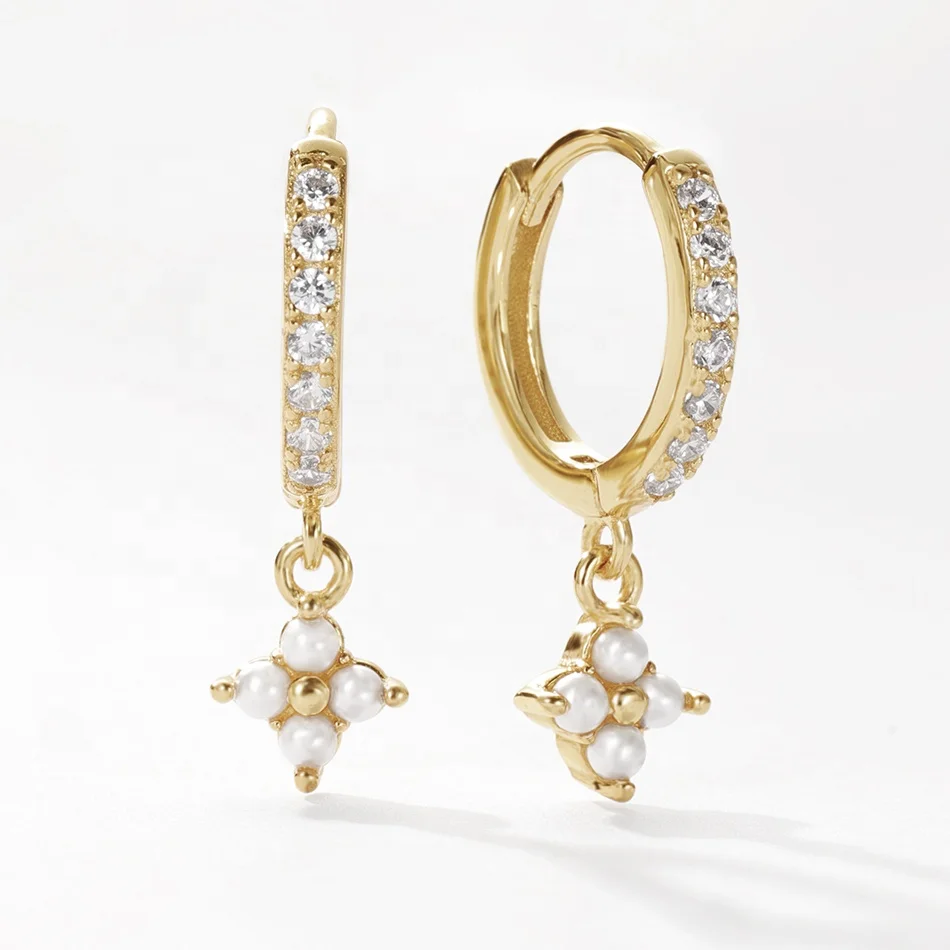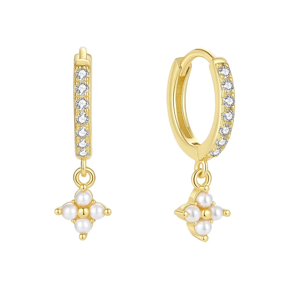 Product Name: belawang dainty trendy jewelry 18k gold vermeil 925 sterling silver shell pearl lvy flower drop hoop earrings with zirconia