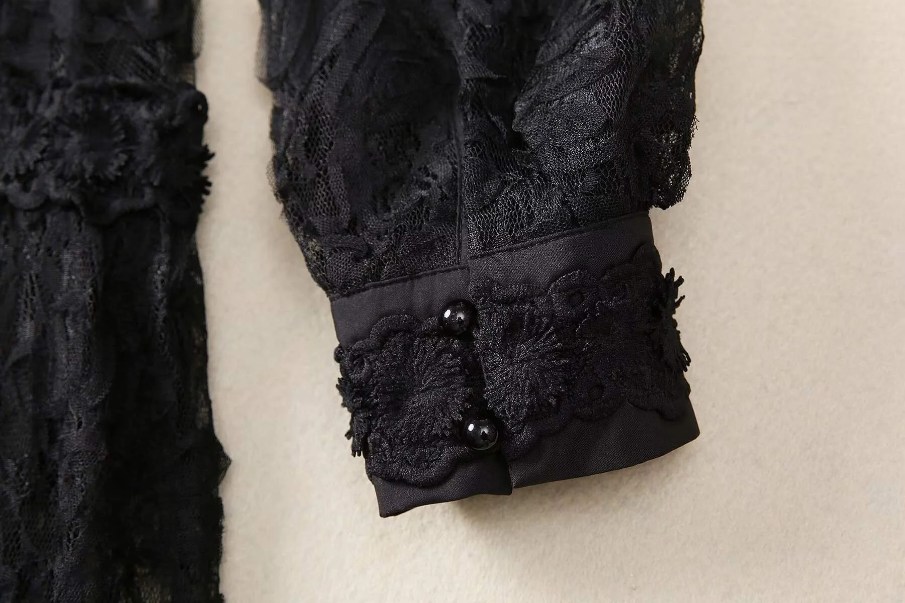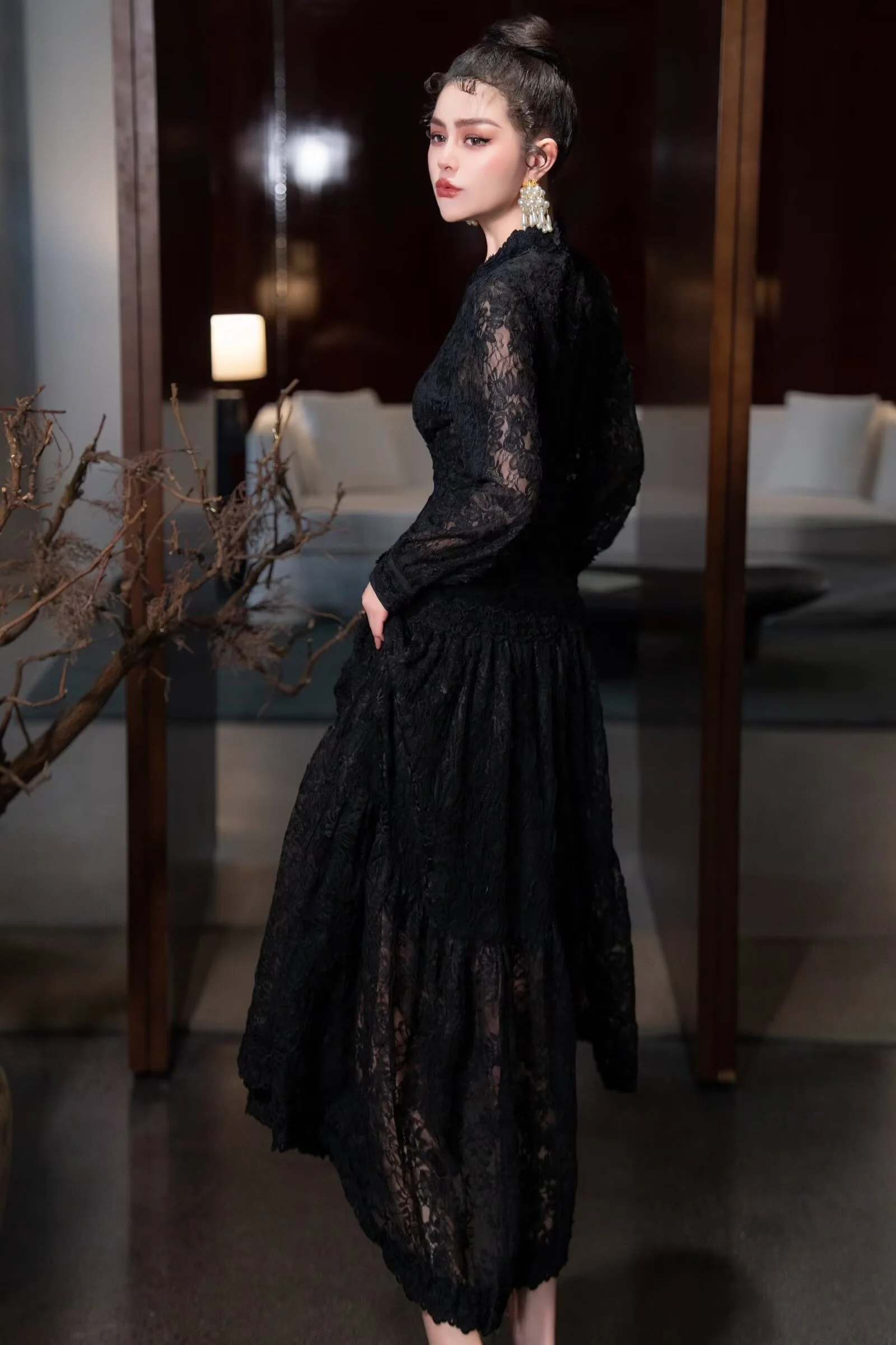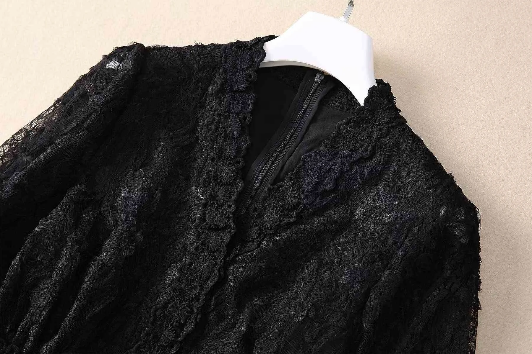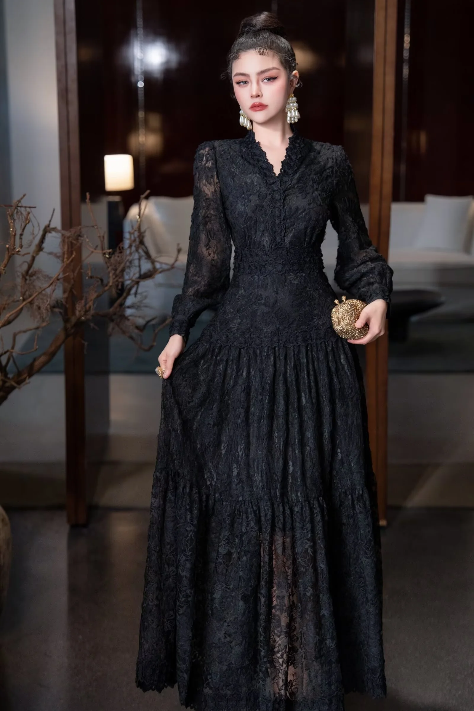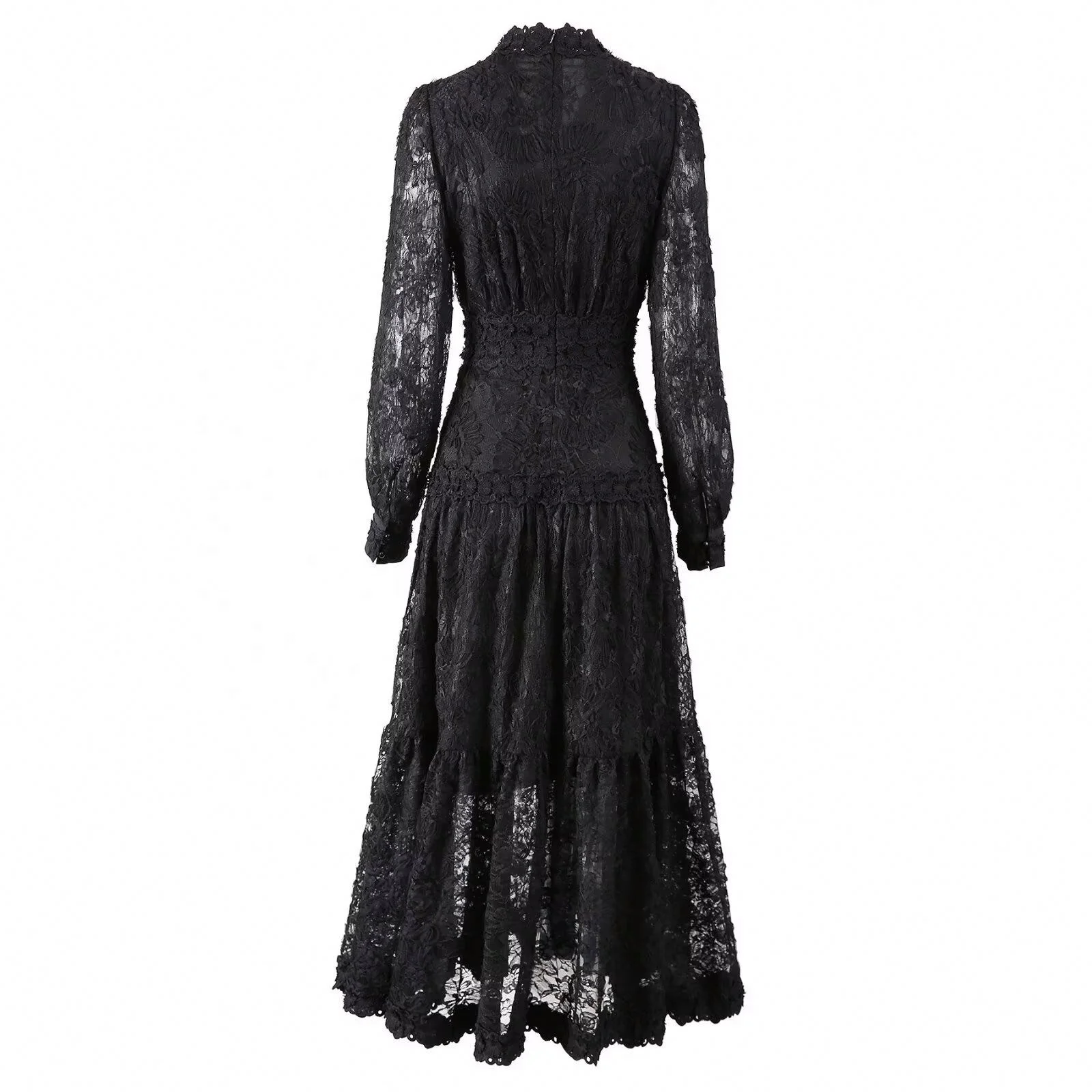 Product Name: Black Long Dress Spring Autumn 2025 New Fashion Design Women Runway High Street Vintage Embroidery Lace Flower A-Line Party