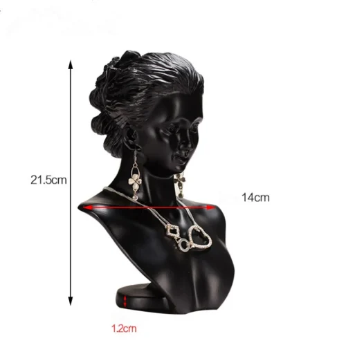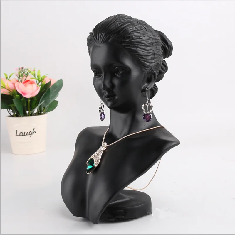 Black Resin Material Elegant Female Mannequin for Fashion Necklace Pendant Bust Jewelry Display Holder Jewelry Store Display