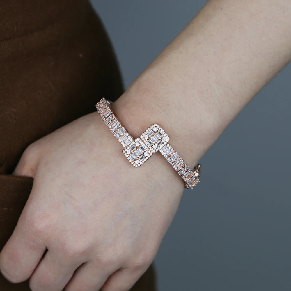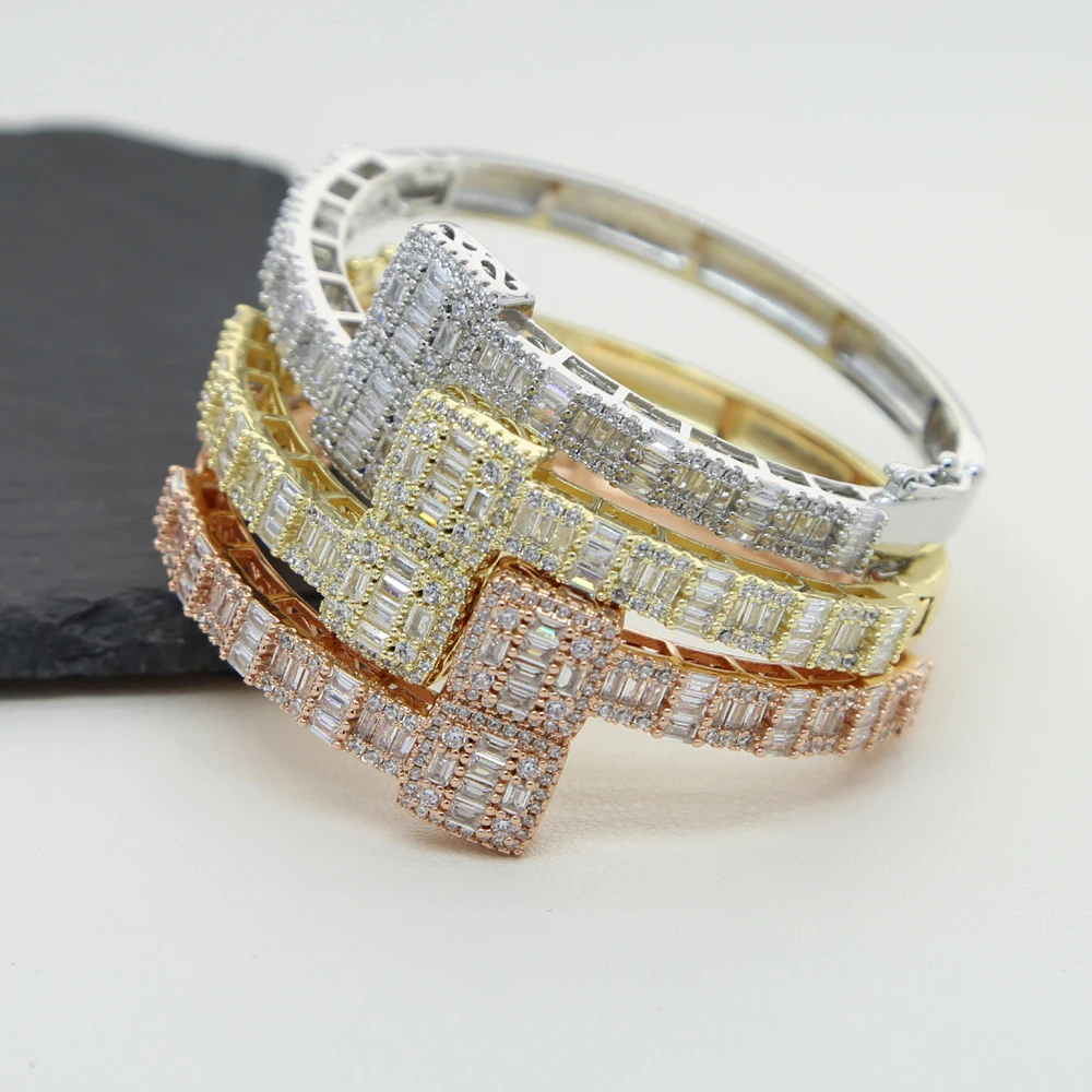 Product Name: Bling 5A CZ Opened Square Cubic Zircon Iced Out Adjustable Bracelet for Men Boy Luxury Fashion Hip Hop Bangle Jewelry