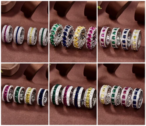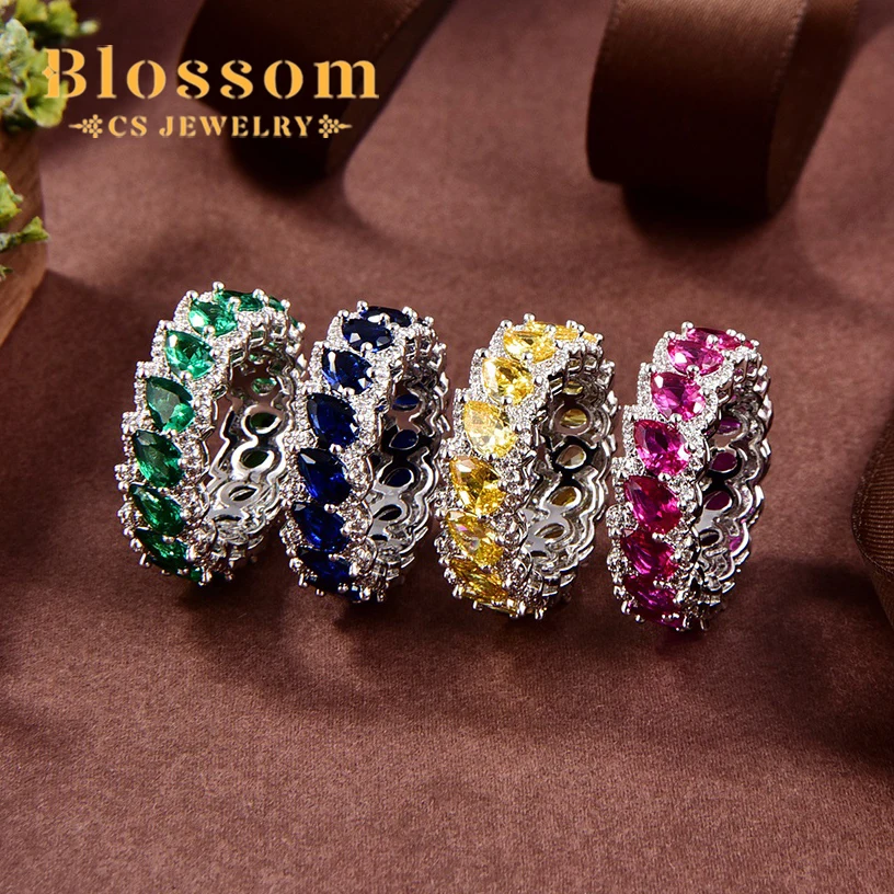 Product Name: Blossom CS Jewelry Best Seller 925 Sterling Silver Fine Color Cubic Zirconia Fashion Tennis Rings for Women