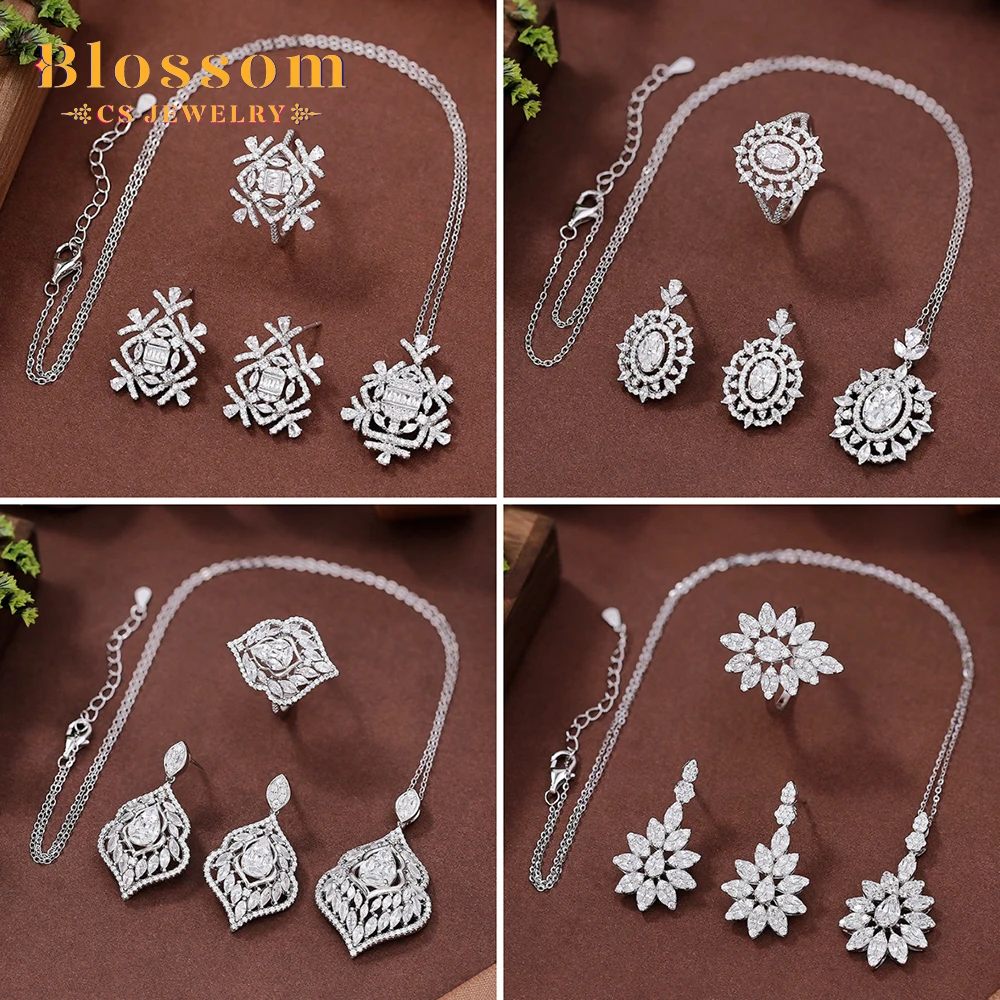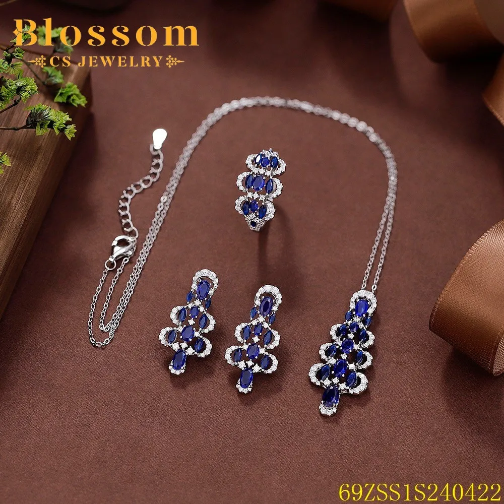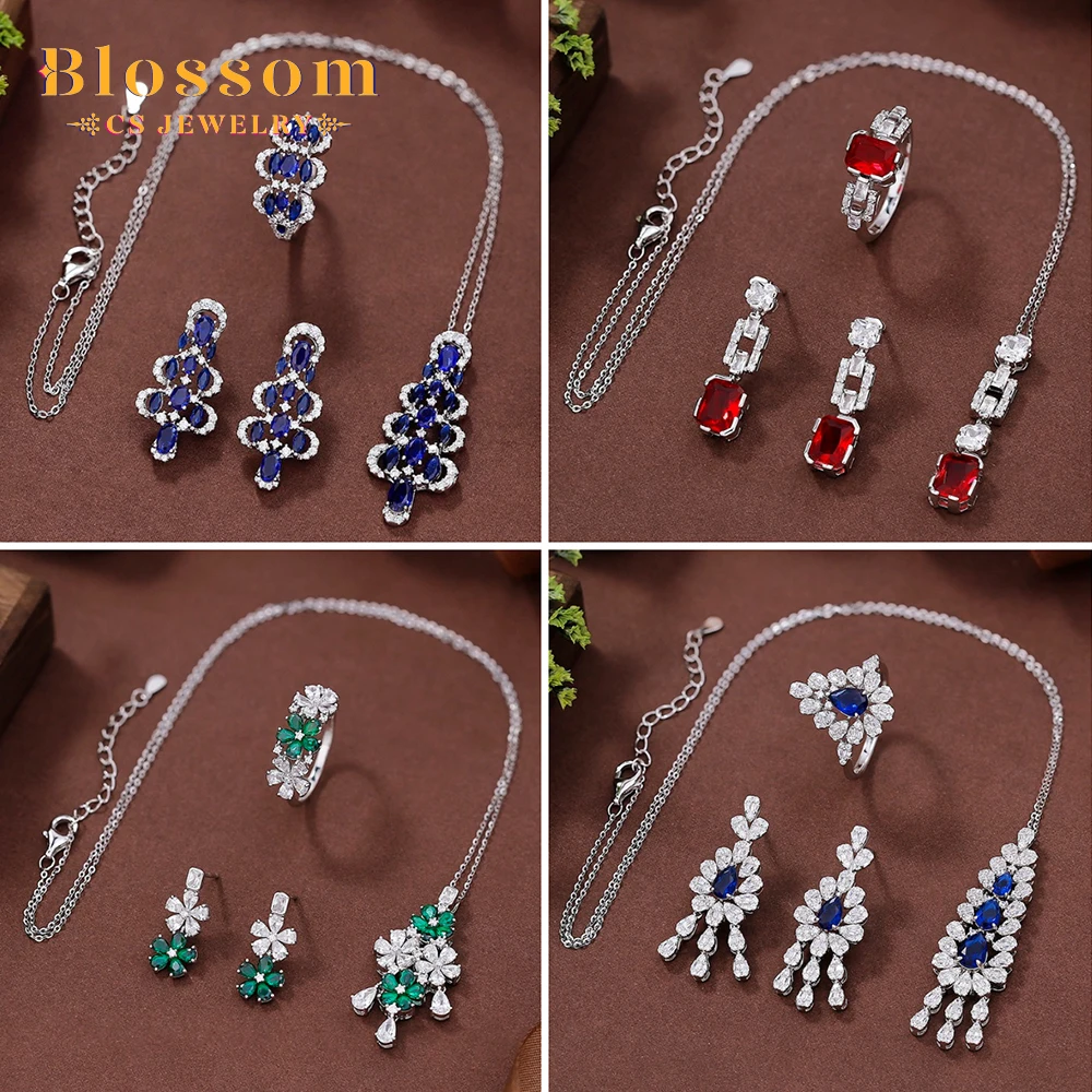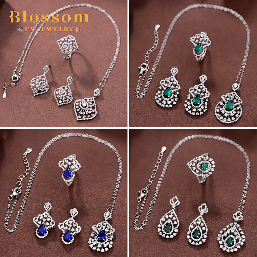Product Name: Blossom CS Jewelry Fashion New Design 925 Sterling Silver Necklace Set Trendy Gemstone Zirconia Fine Jewelry Sets for Women