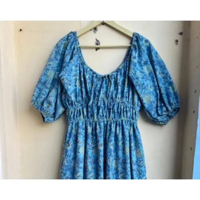 Blue Hand Block Printed Dress Block Print Indian Tunics Hand Dress Indian Cotton Long Gown Indian Printed Dress