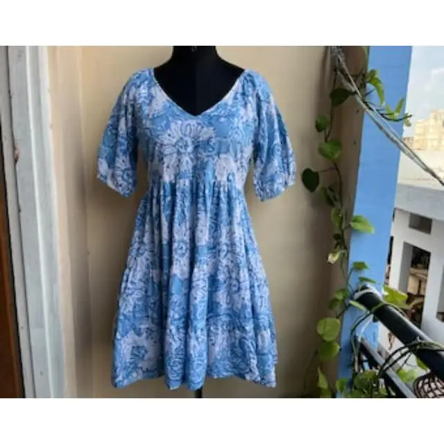 Blue Hand Block Printed Dress Block Print Indian Tunics Hand Dress Indian Cotton Long Gown Indian Printed Dress