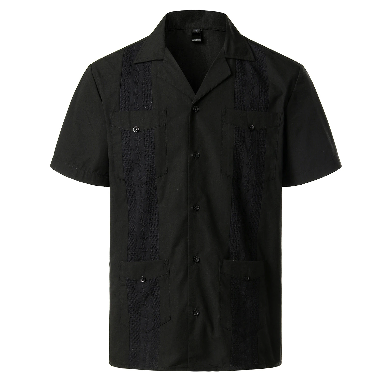 BM135-Mens Short Sleeve Over Sized Cuban Beach Pocket Button Down Guayabera Shirts for Summer