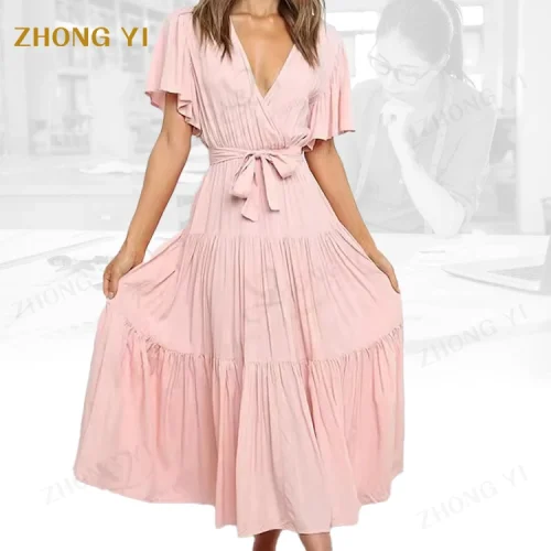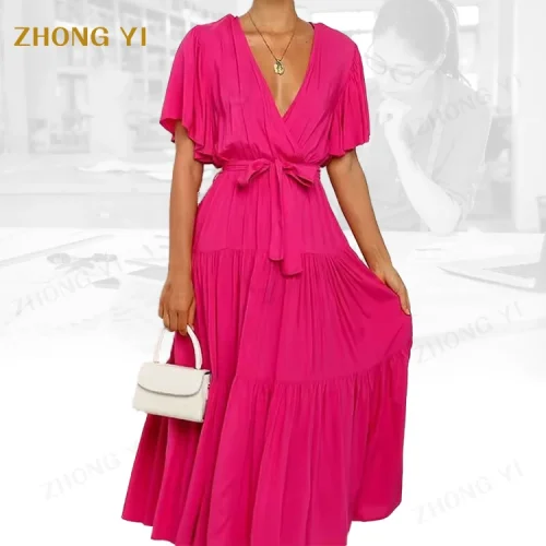 Bohemian Long Dresses for Women Summer Lady Elegant Ladies Loose Beach Sundress Female Holiday Long Casual Dress