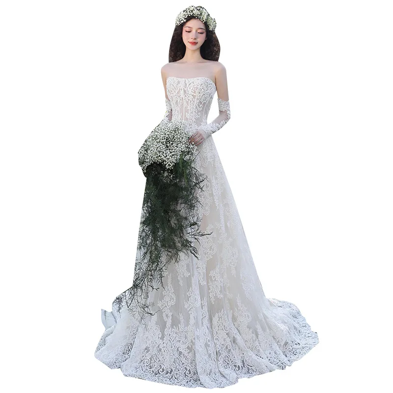 Product Name: Bridal Tube Top High-Grade Vintage Lace Fairy Beach Small Trailing Welcome Wedding Dress