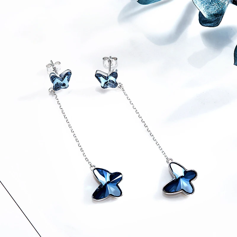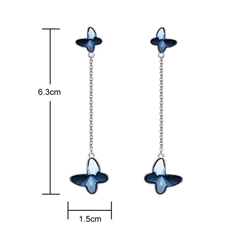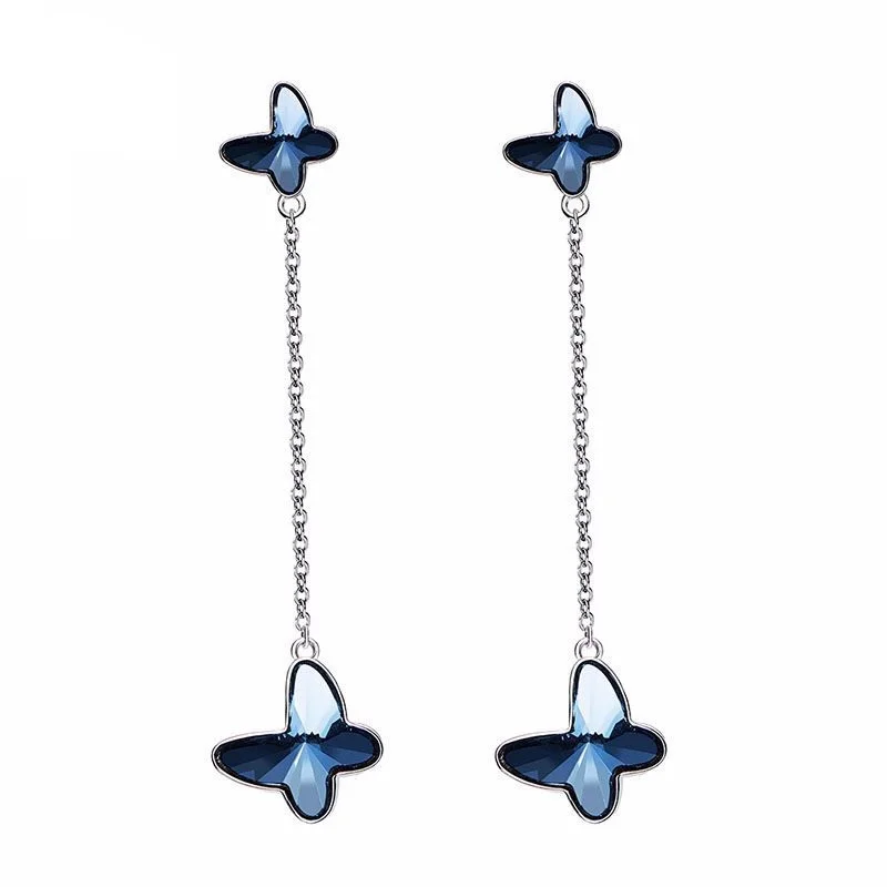Butterfly Austrian Crystal Gold Plated Tassels Drop Earrings for Women Fashion Jewelry Earrings
