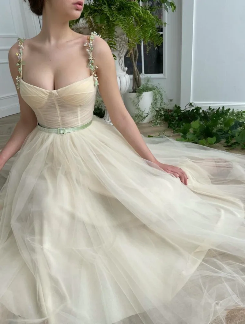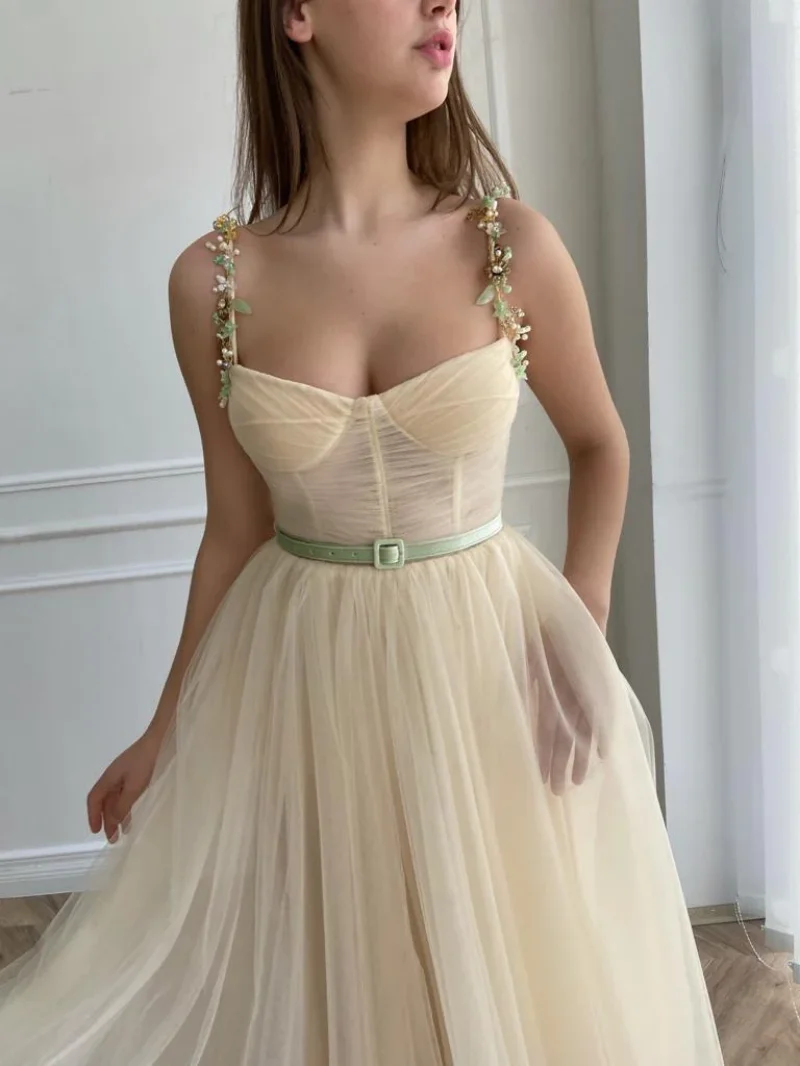 Product Name: Casual Pearls Spaghetti Straps A-line Engagement Wedding Gown Birthday Party Dress Plus Size Women Prom Evenining Dresses