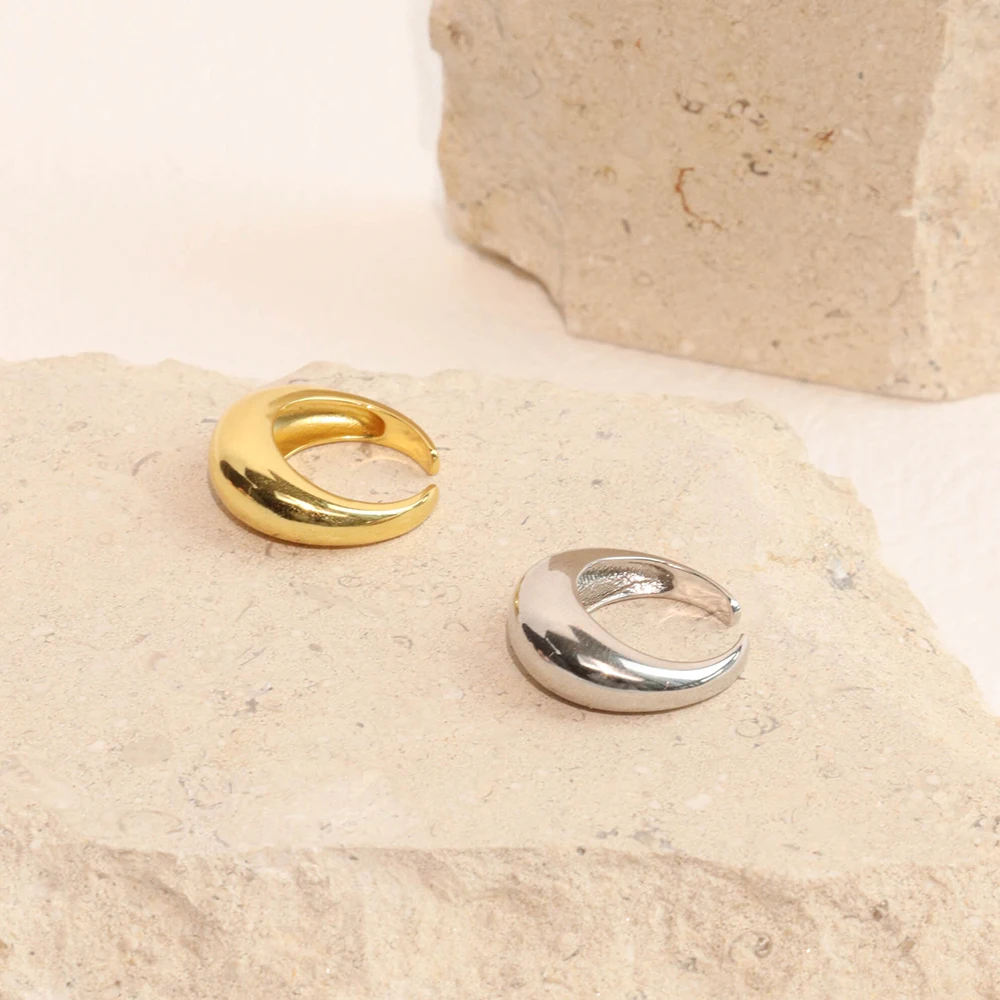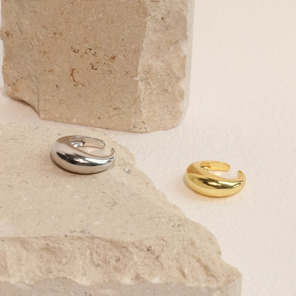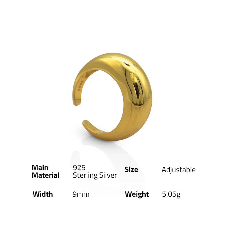 Product Name: Chris April in Stock Gold Plated Fashion Big Glow Moon Shape Gold Plated Simple Silver Rings 925 Sterling
