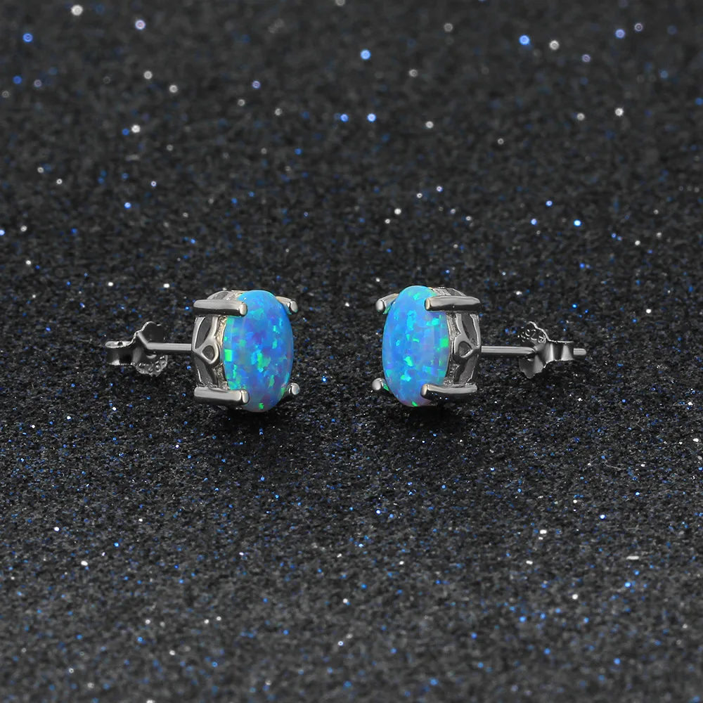 Classic Elegant Oval Opal Stone Earrings 925 Sterling Silver Hypoallergenic Fine Jewelry Accessories Fashion Women Jewelry