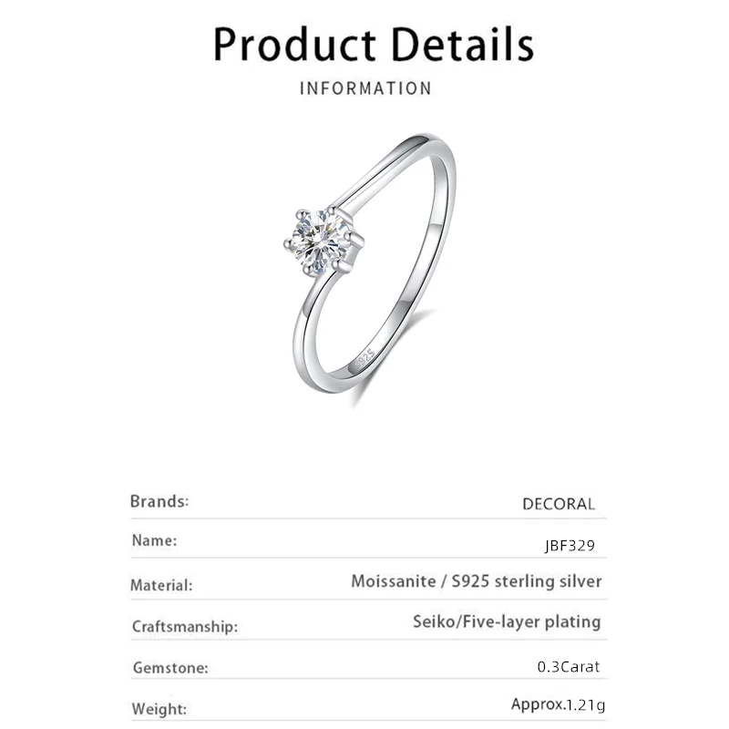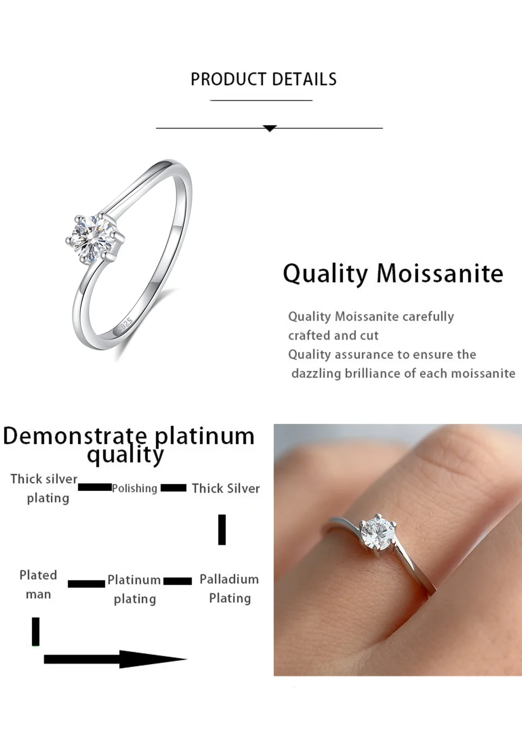 Classic Fashion Premium Jewelry 0.3carat Round Brilliant Cut Mosanite Diamond Ring 925 Sterling Silver for Women Wedding Jewelry