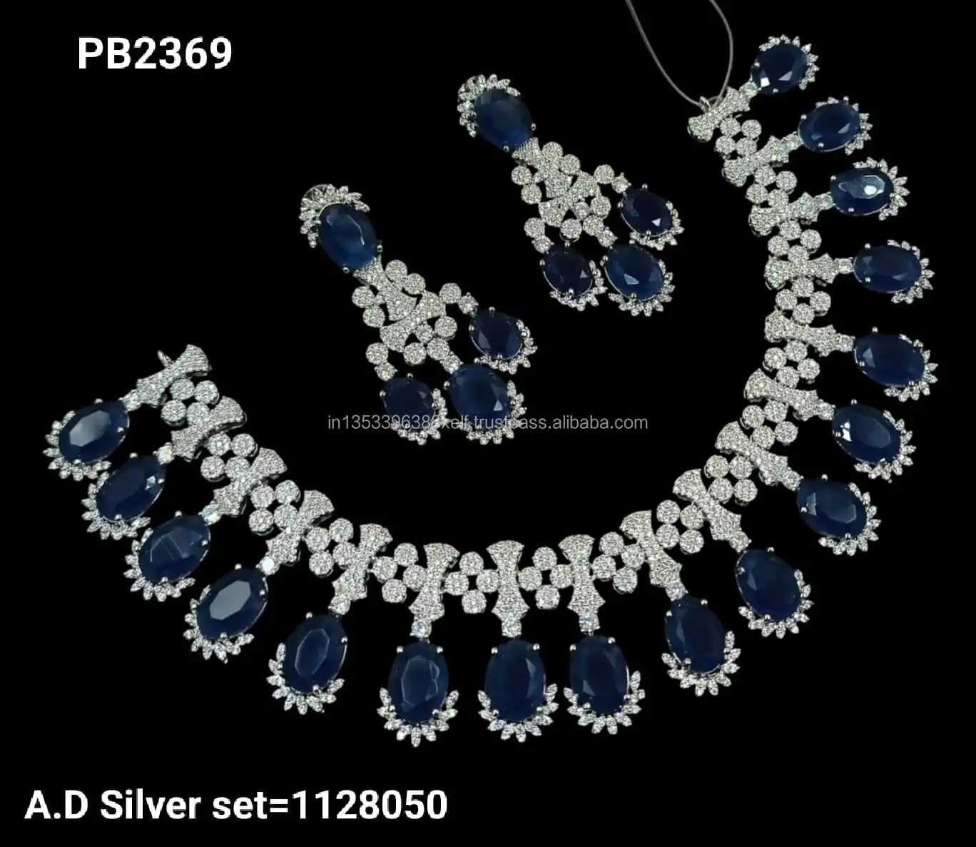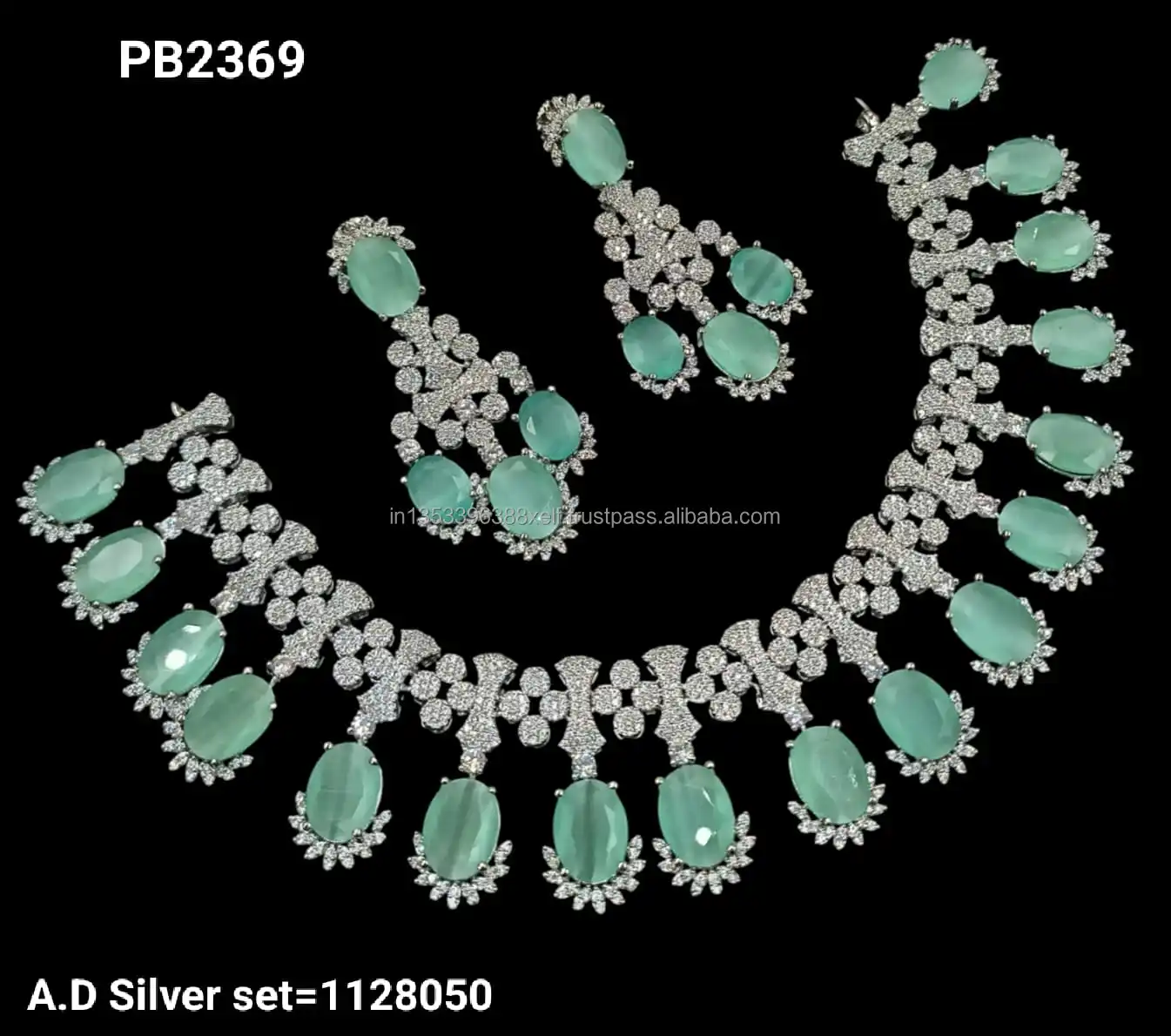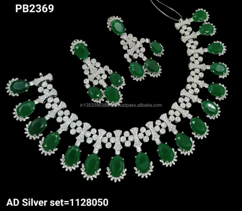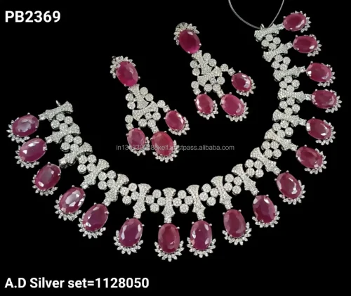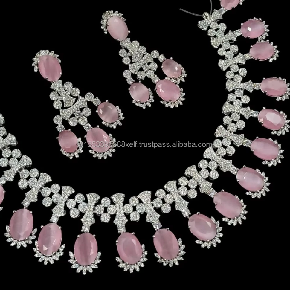 Product Name: Classic Stylish American Diamond Silver Plated Bridal Jewellery Set With Matching Earrings Necklace Set Wedding Wear to Women