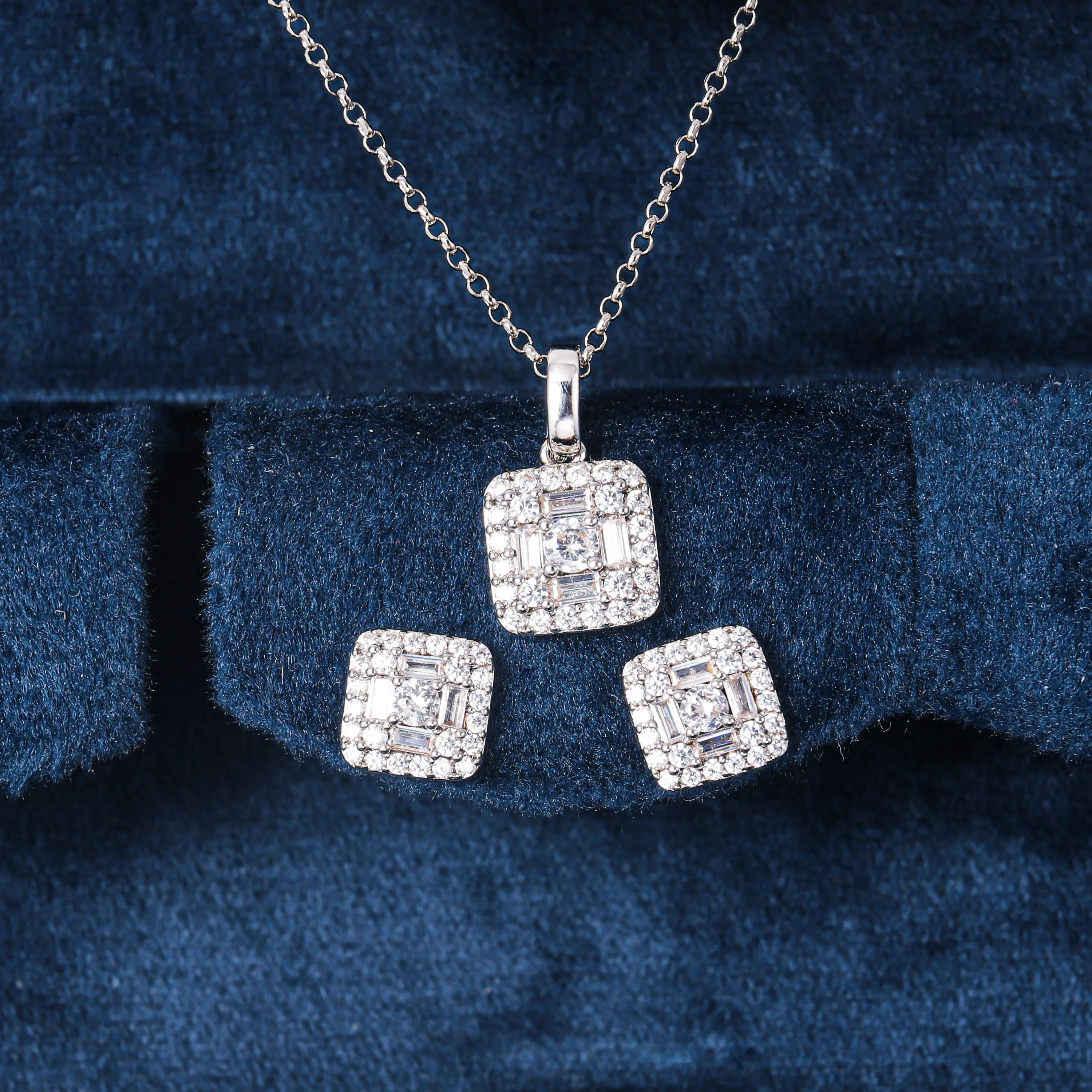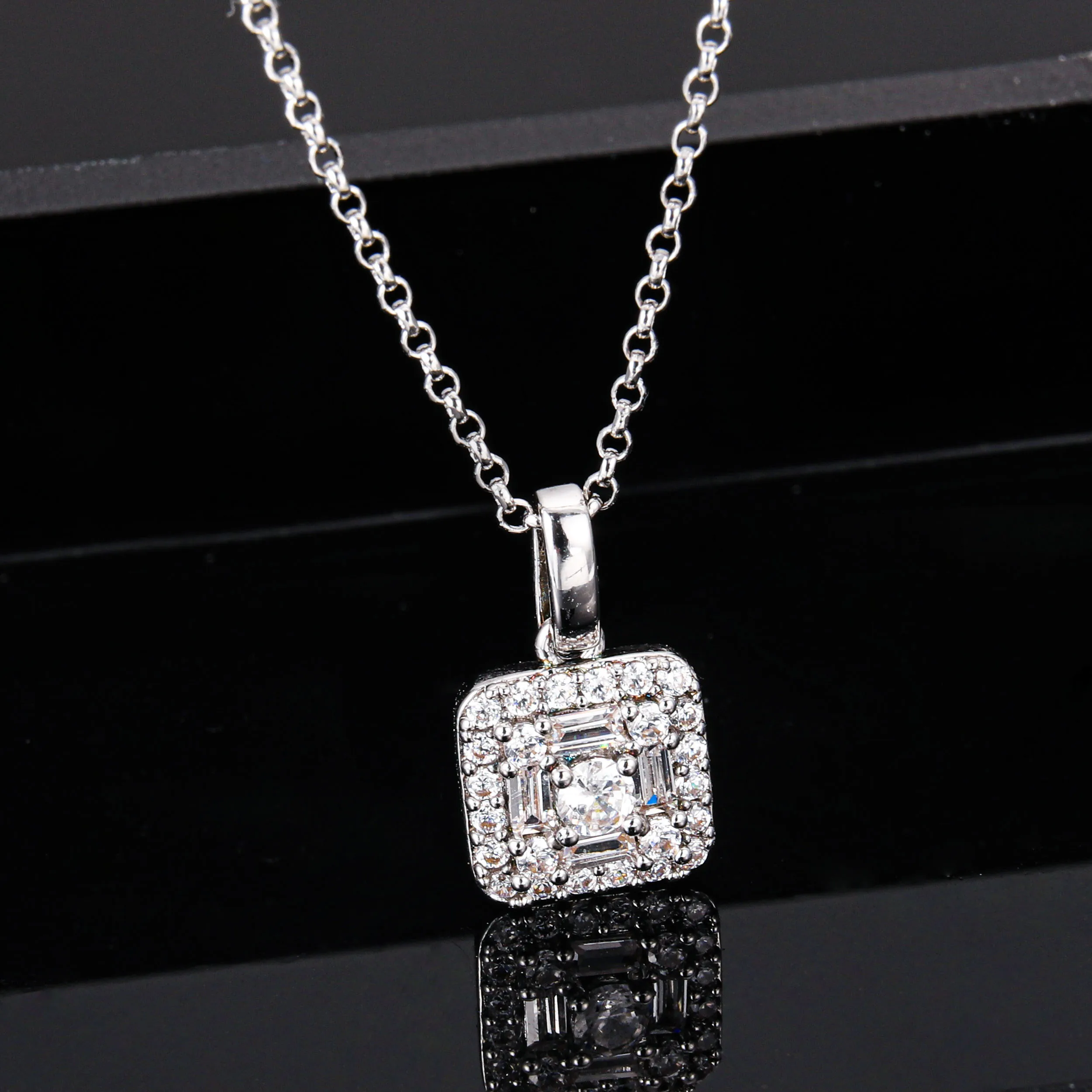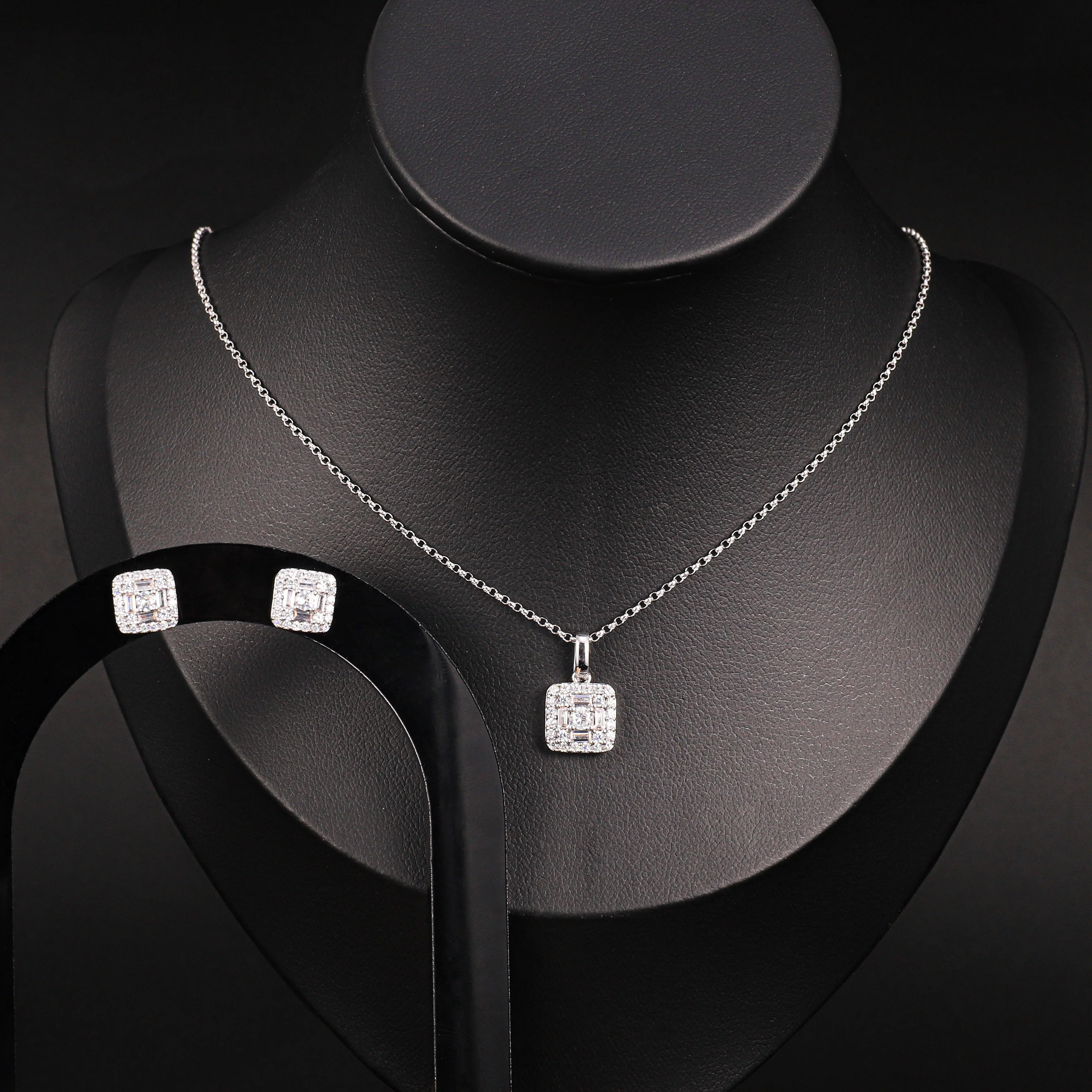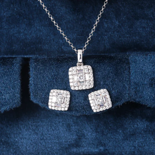 Product Name: CM Jewelry Joyas Fashion Jewelry Women Shimmering Classic clear Latest square Stud Earring and Pendant Necklaces Jewelry Set