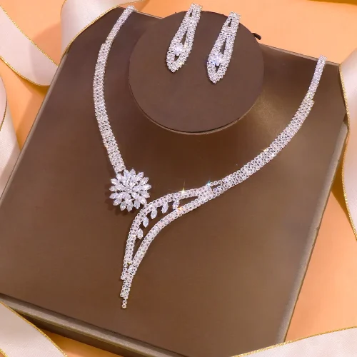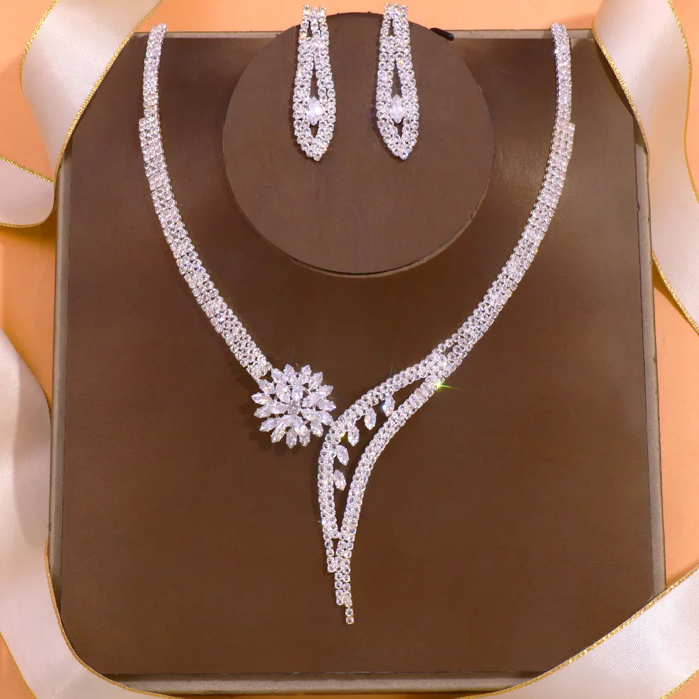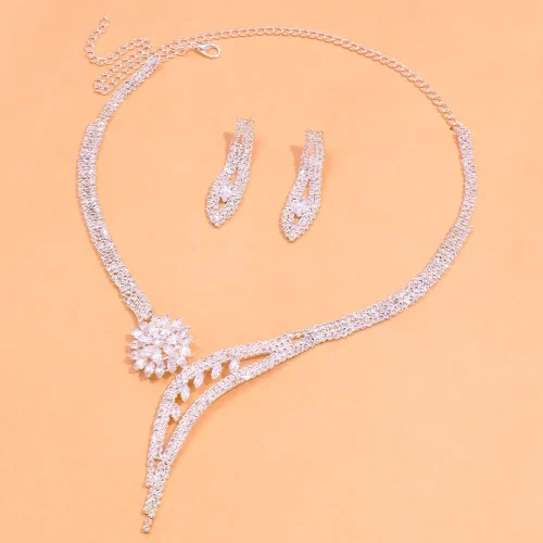 Product Name: Crystal Wedding Jewelry Sets Fashion Earring and Necklace Women Zircon Jewelry Sets