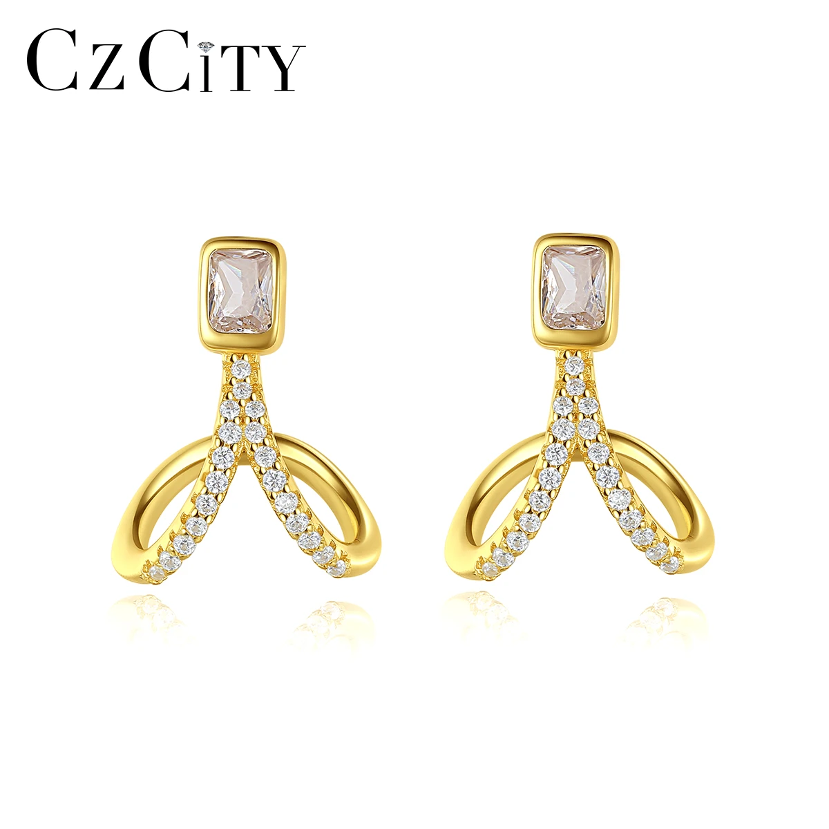 Product Name: CZCITY 925 Sterling Silver 14K Gold Plated Stud Earrings for Women Dainty Hook Wear Earring Jewelry