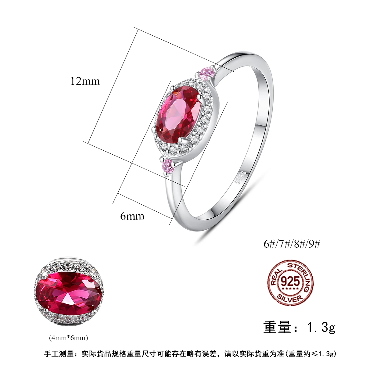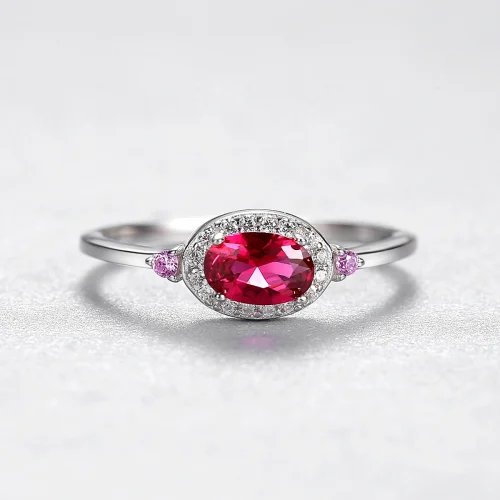 Product Name: CZCITY 925 Sterling Silver Eternity Bridal Band Ring Women Fine Jewelry Oval Cut Red Ruby Gemstone Ring