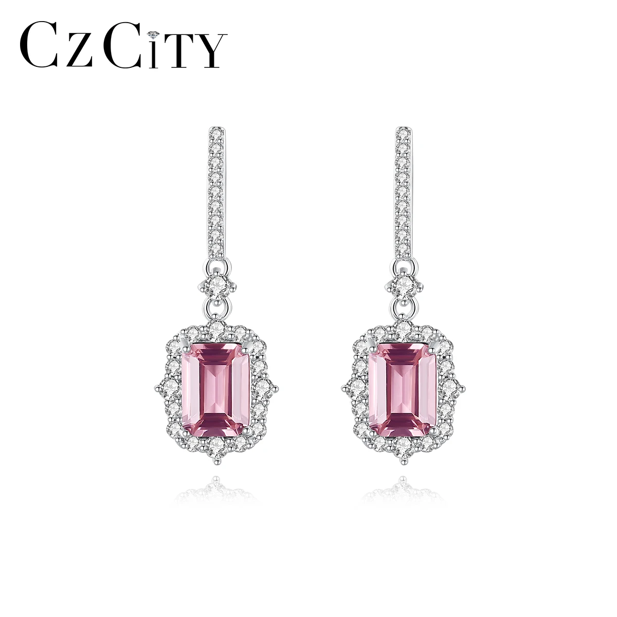 CZCITY Designer Popular Brand 925 Sterling Silver Wedding Long Dangle Gemstone Statement 2025 Jewelry Earring
