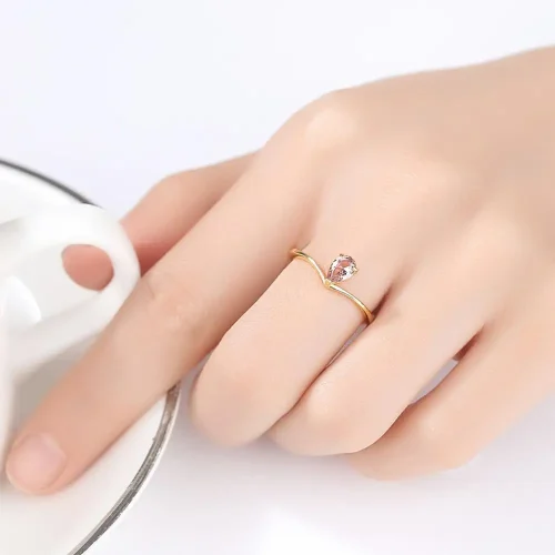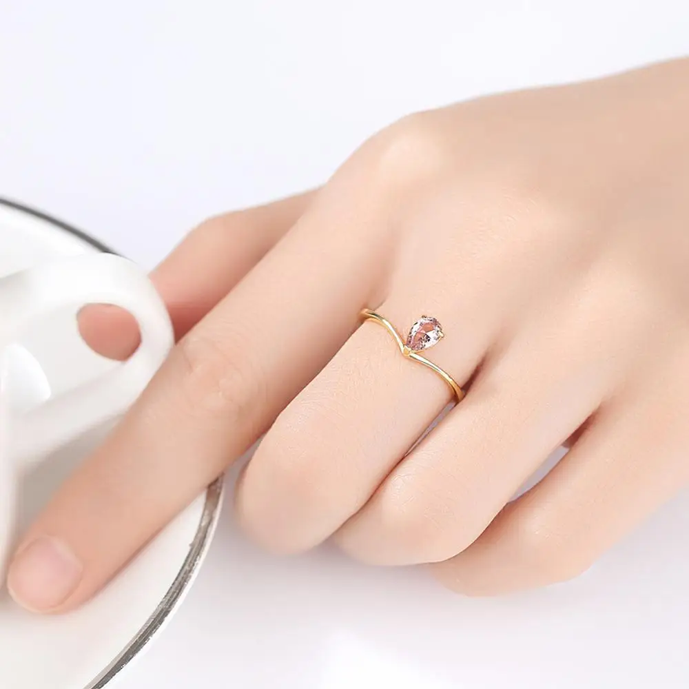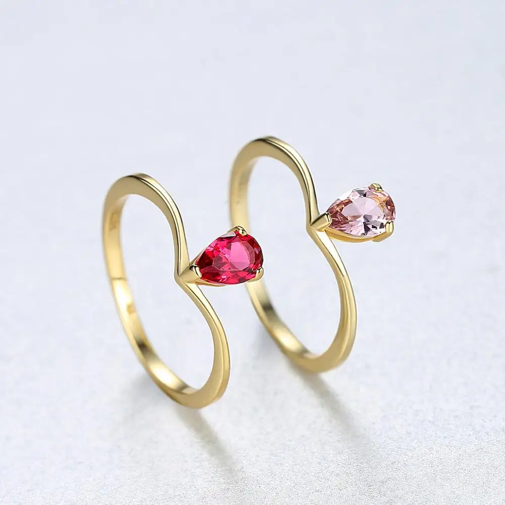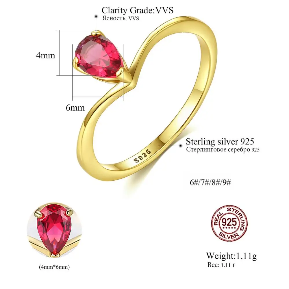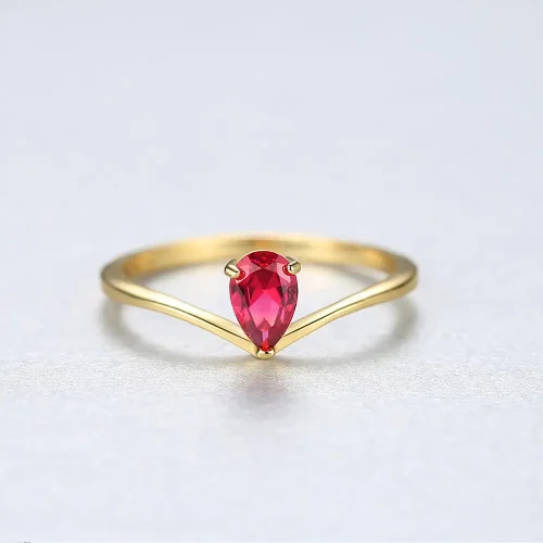 Product Name: CZCITY Little Girl S925 Silver Drop-Shaped Dainty Gemstone Tear Drop Fashion for Woman Red Ruby Ring
