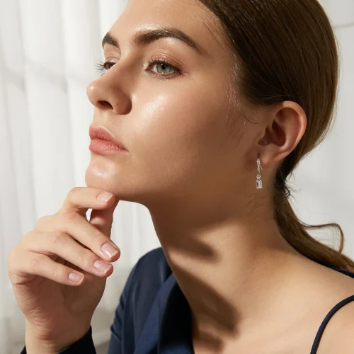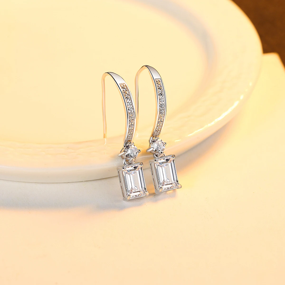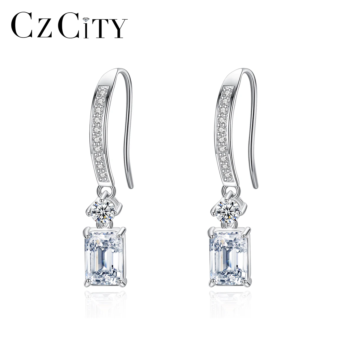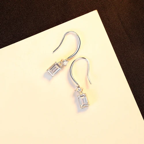 Product Name: CZCITY Simple Style Rhodium Plated 925 Sterling Silver Jewelry Emerald Cut Zirconia CZ Diamond Hook Earrings for Women