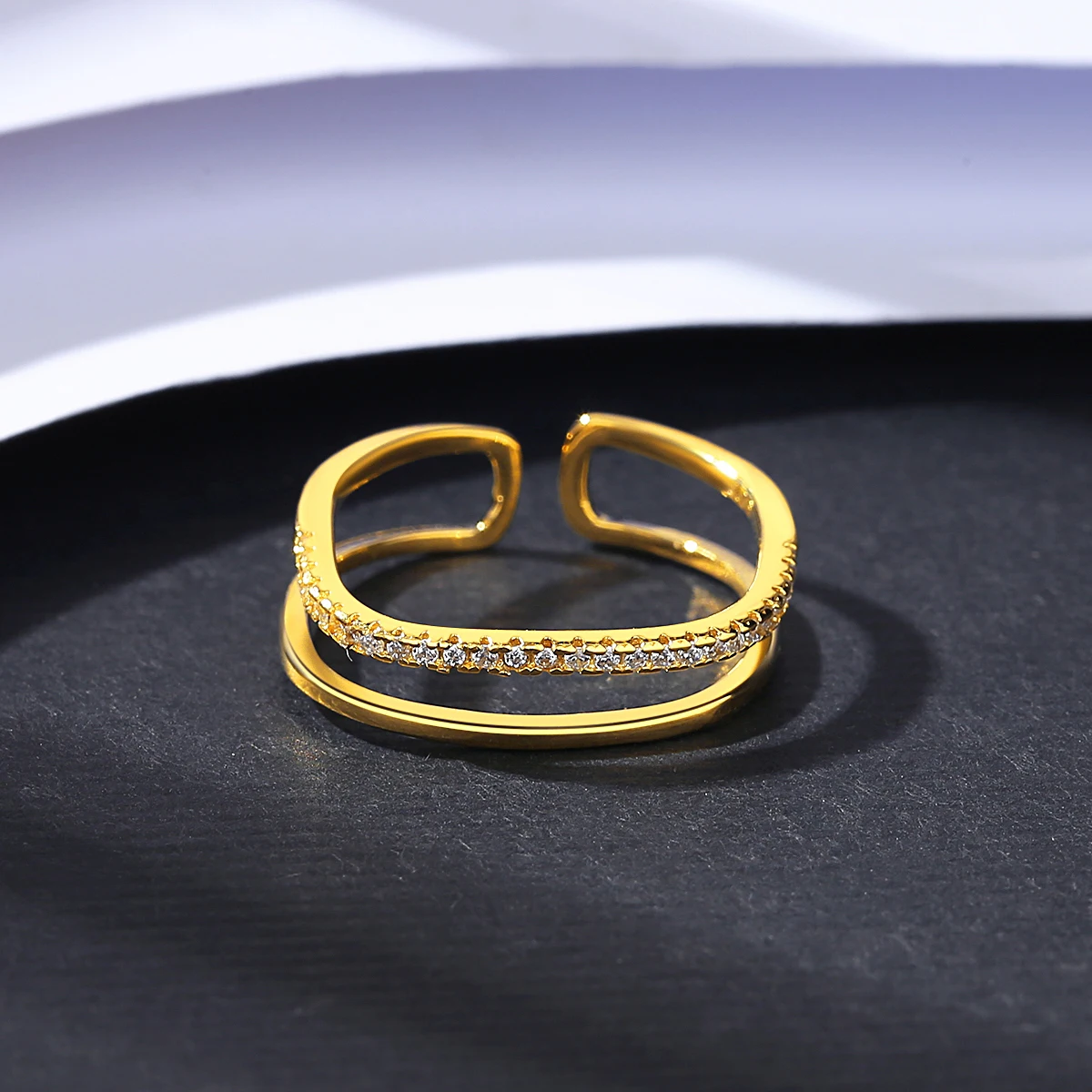Product Name: CZCITY Trendy Popular Women Jewelry 925 Sterling Silver Adjustable Rings Gold Plated CZ Stackable Double Layer Minimalist Ring