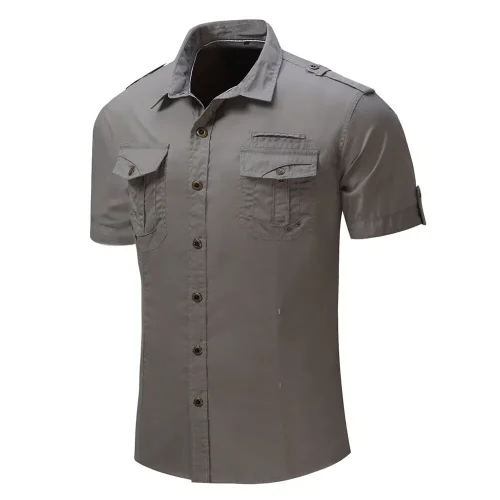DAN778 -Cotton Shirts Casual Cargo Work Shirts with Pocket Stylish Shirts
