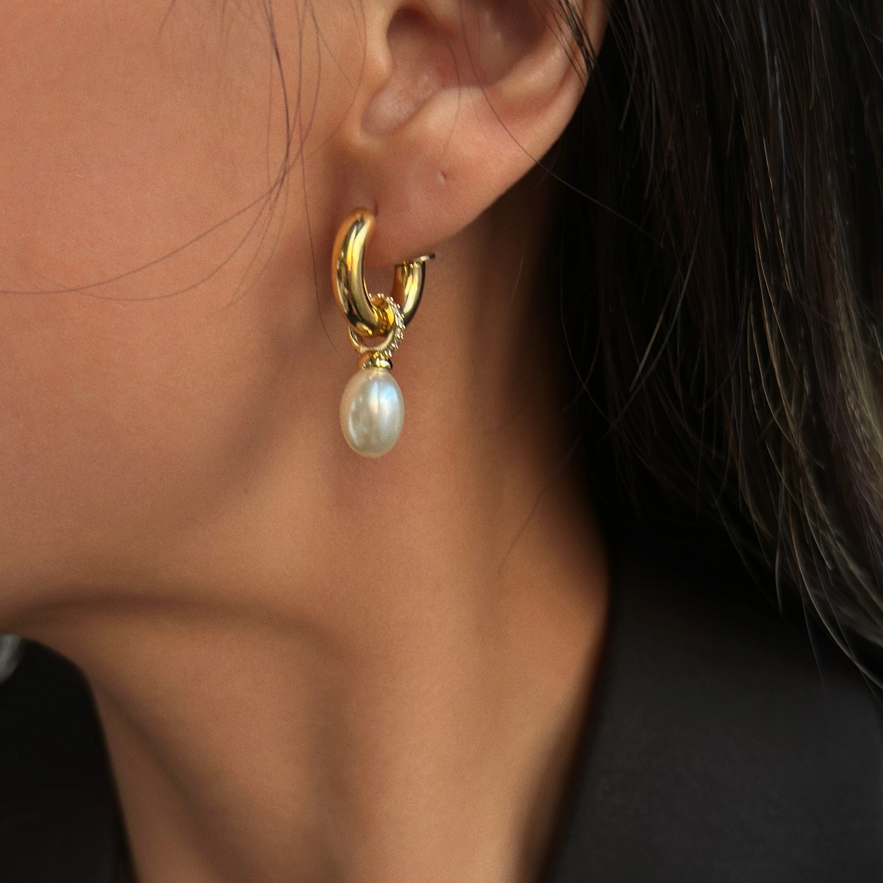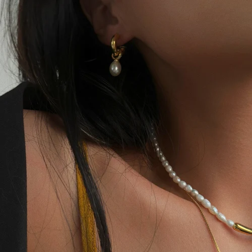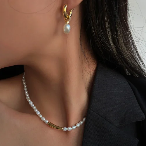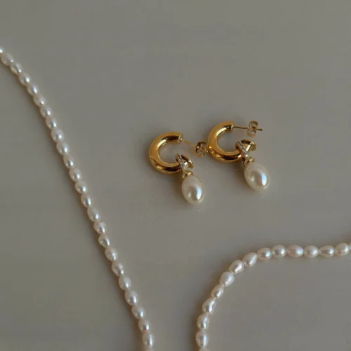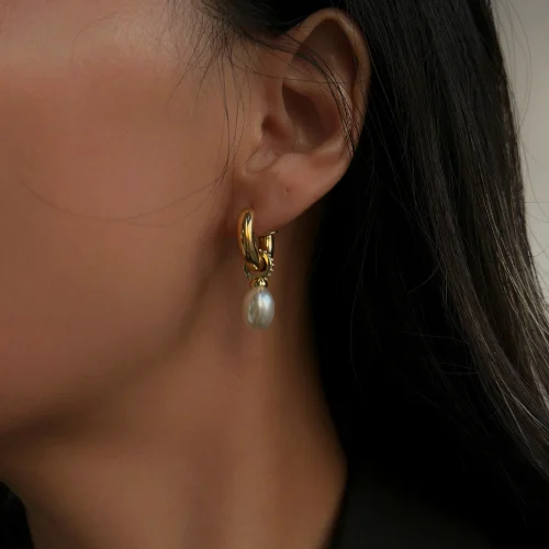 Product Name: Dazan New 18k Gold Plated Unique Hypoallergenic Stainless Steel Vintage Bulb Natural Pearl Pendant Earrings for Banquet Women