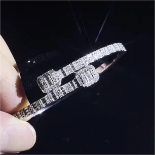 De Fine Jewelry 925 Sterling Silver Iced Out VVS Baguette Moissanite Bracelet T Square Diamond Cuban Link Bangles for Women Men