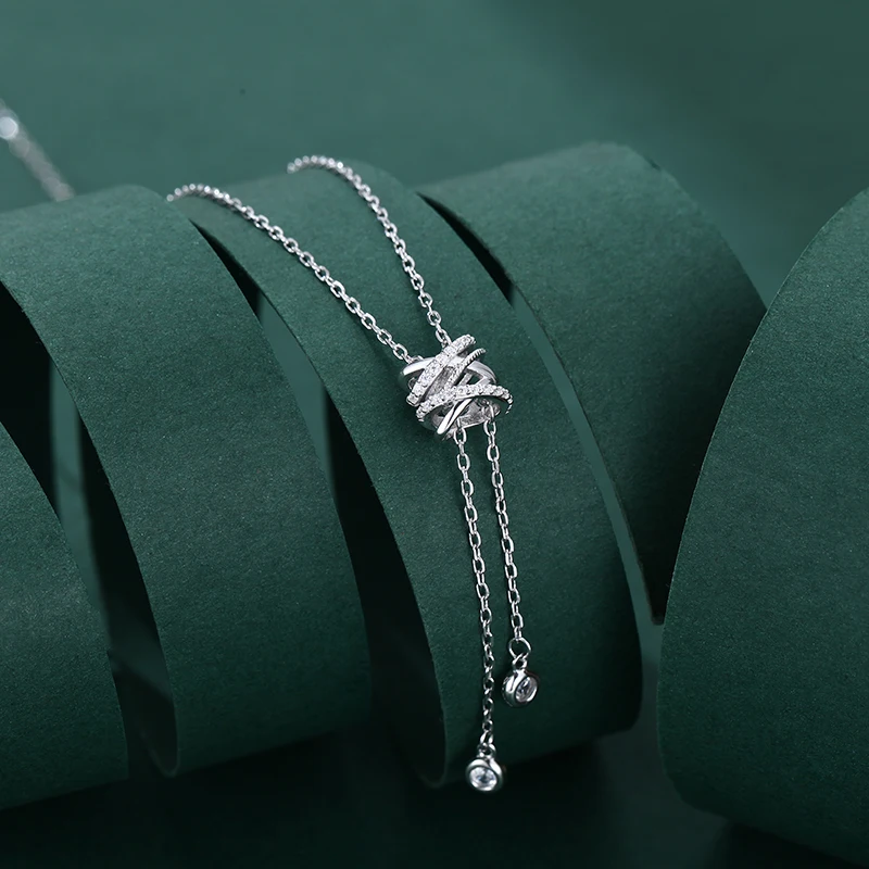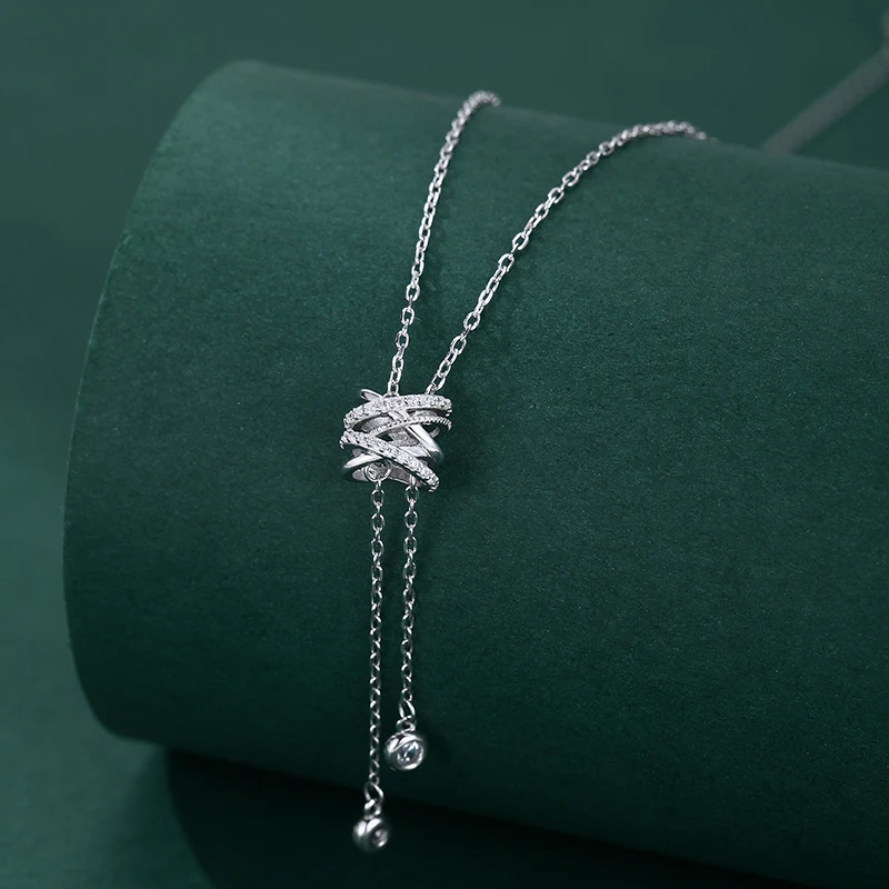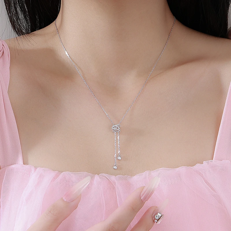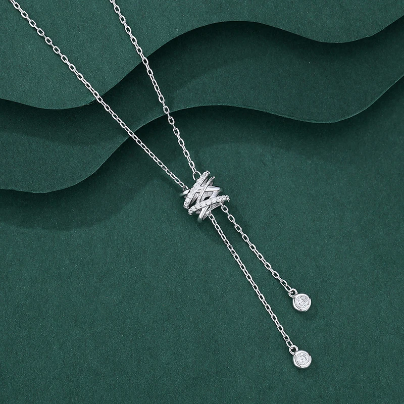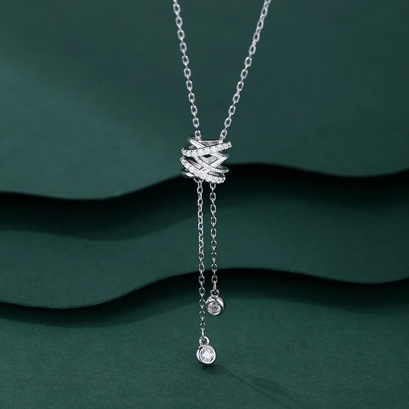 Delicate Women Cubic Zirconia 925 Sterling Silver Fine Jewelry Long Tassel Pendant Necklace Winding Toroidal Tassel Necklace