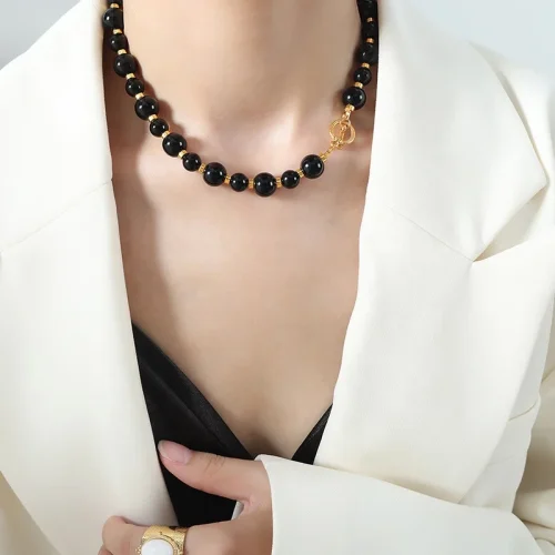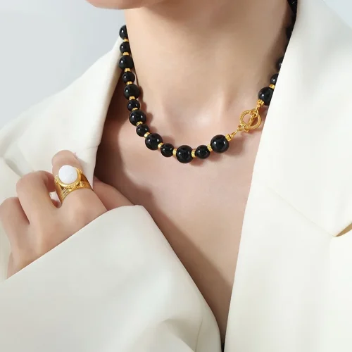 Product Name: Design Fashion Brand Beads Stainless Steel Chains Gold Plated Jewelry Necklace for Women