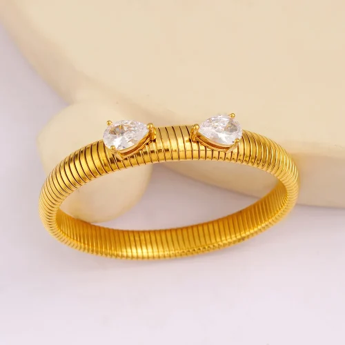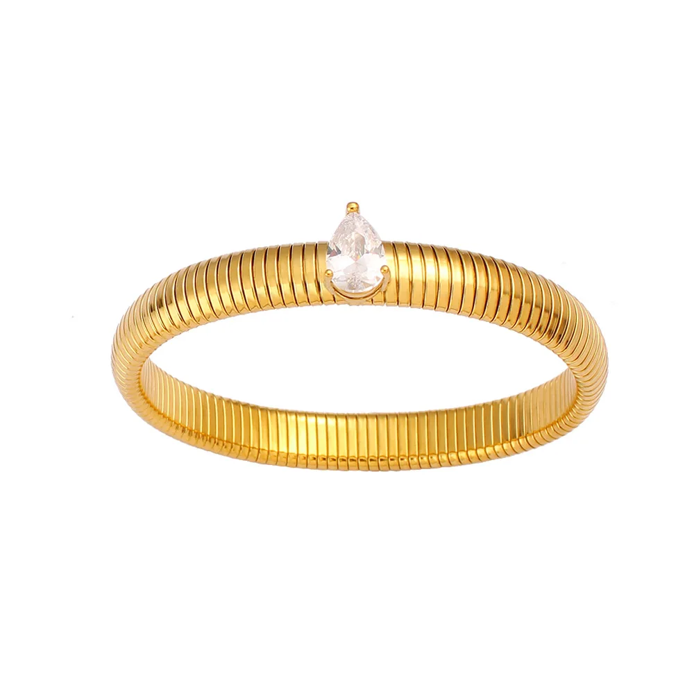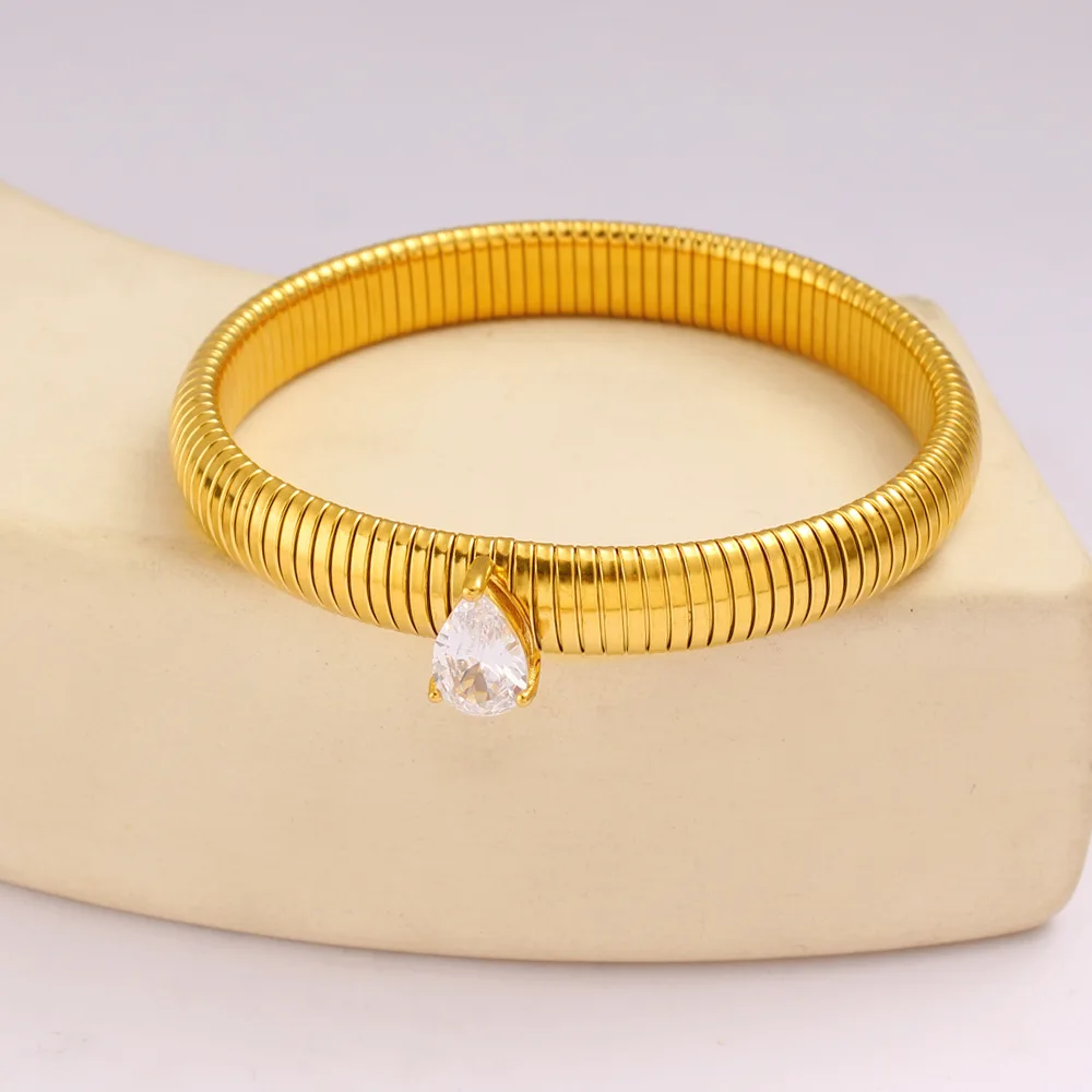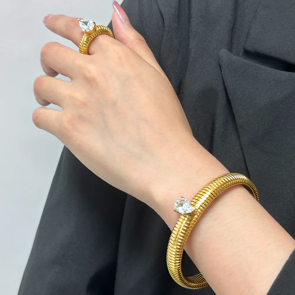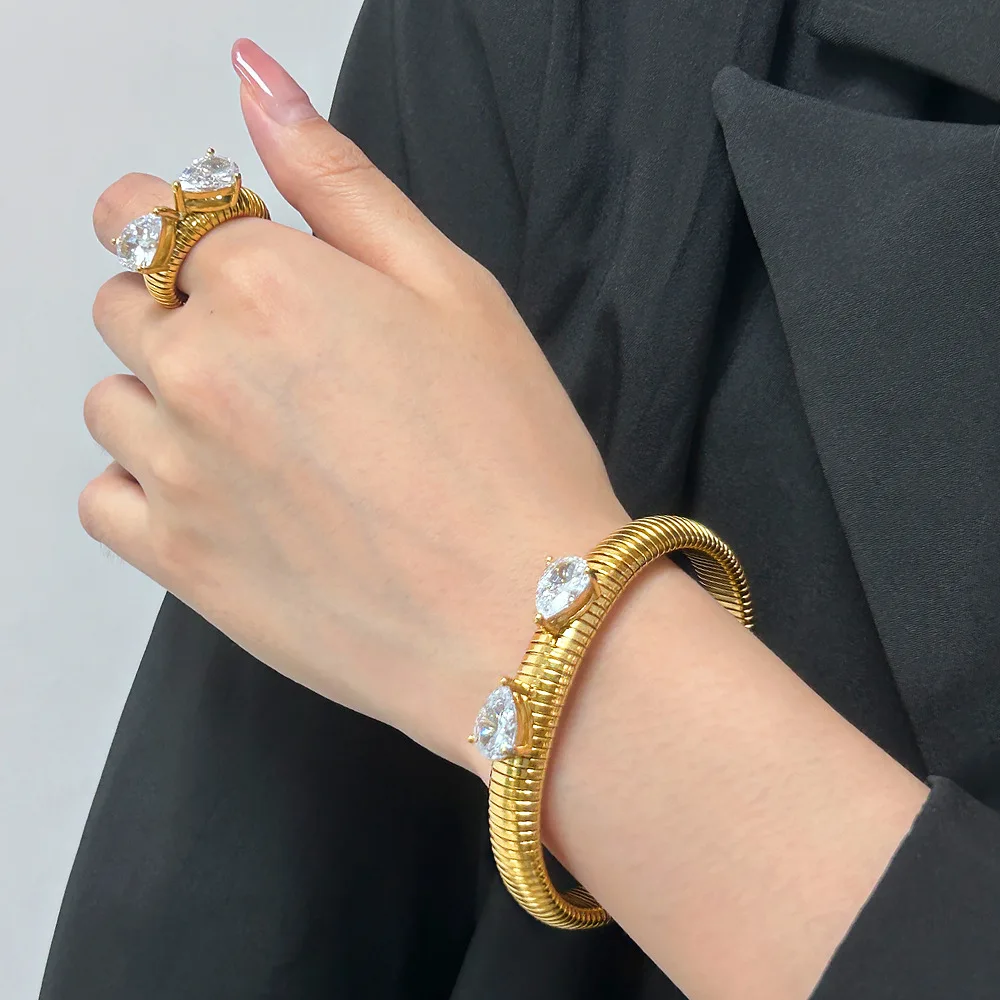 Product Name: Designer Luxury Fashion Jewelry Chunky Drill Zircon Bracelet Bangle and Ring Sets 18 k Gold Plated Stainless Steel for Women