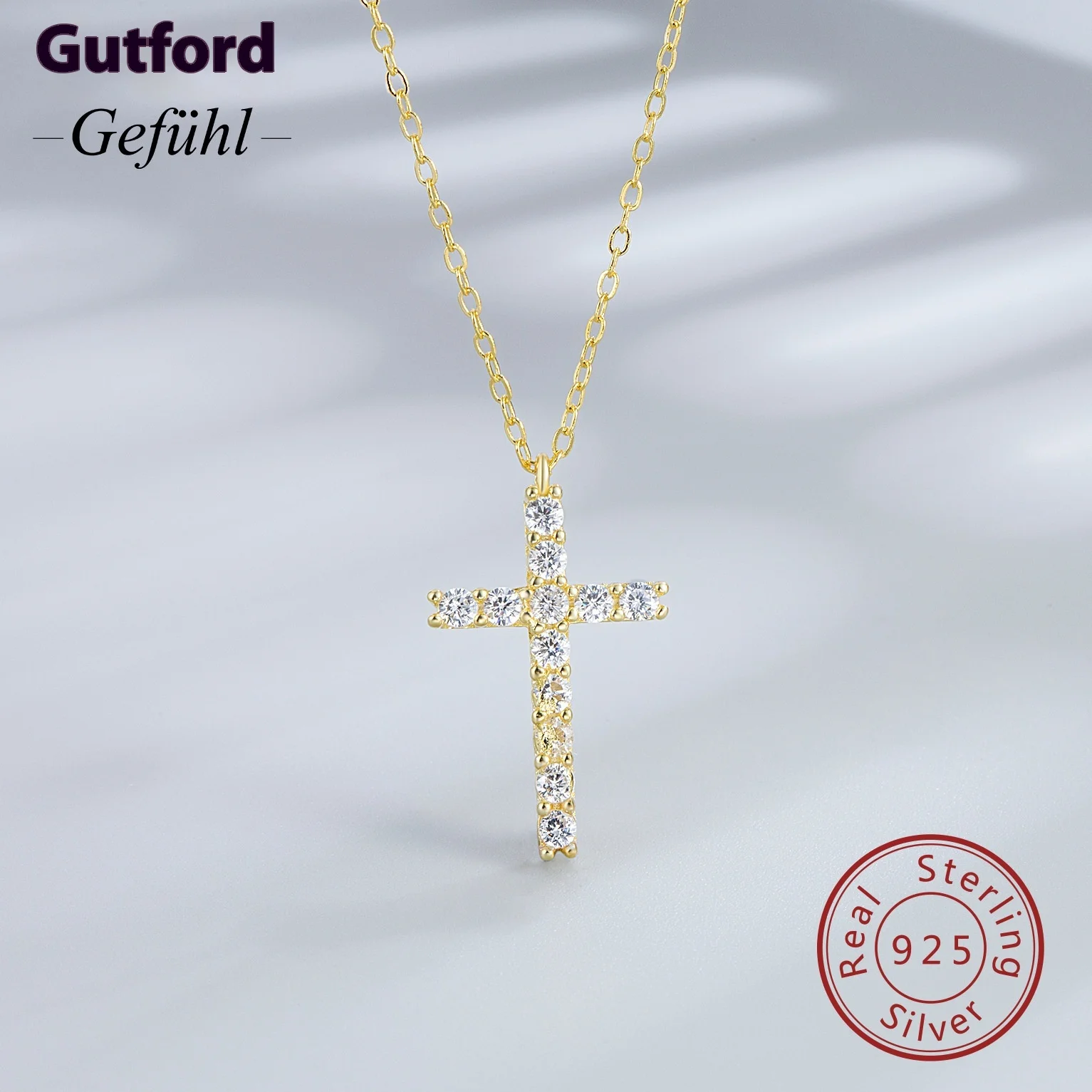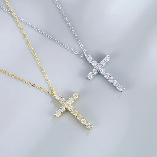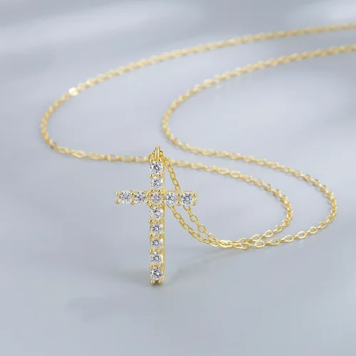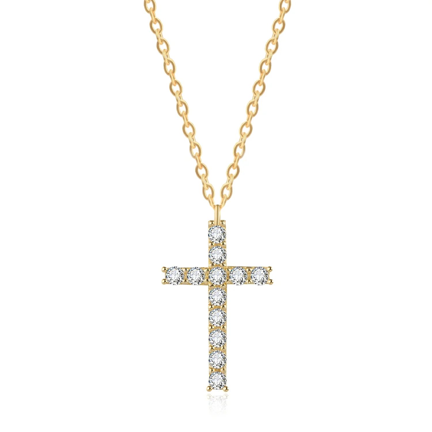 Product Name: Diamond 925 Silver Jewelry Cross Necklace with Gold Plating Waterproof Trendy Style Zircon Pendant