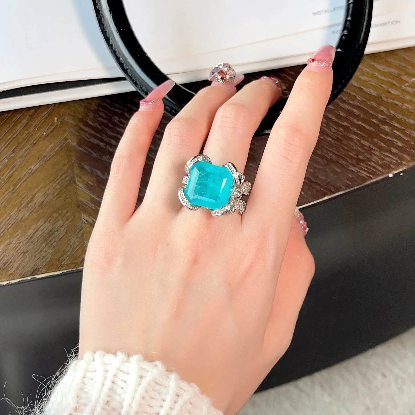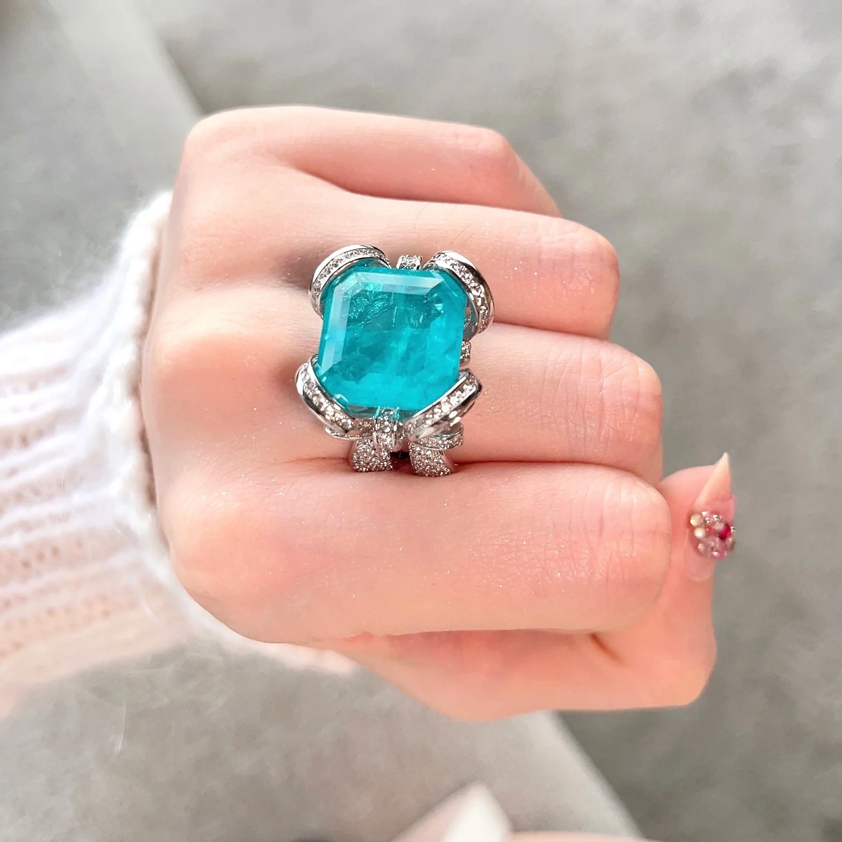 Product Name: Diamond Pink Zircon Bow Ring Trendy Luxury Copper Gemstone Engagement Jewelry CMA Certified for Parties and Gifts