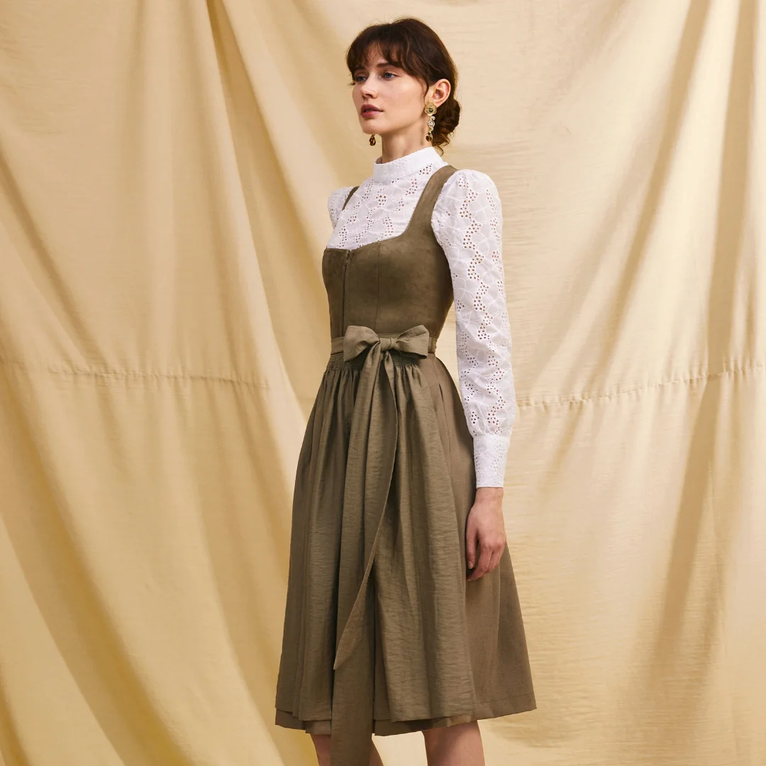Product Name: Dirndl Clothing Higher Quality Moss Green Dirndl with Velour Bodice Bavarian Women’s Oktoberfest