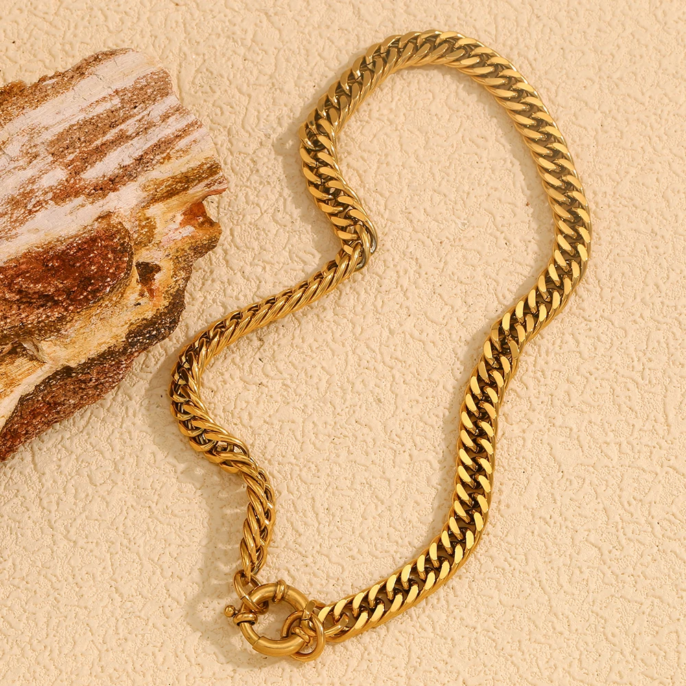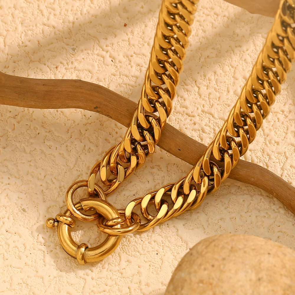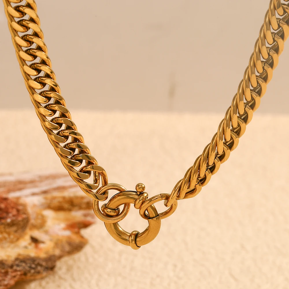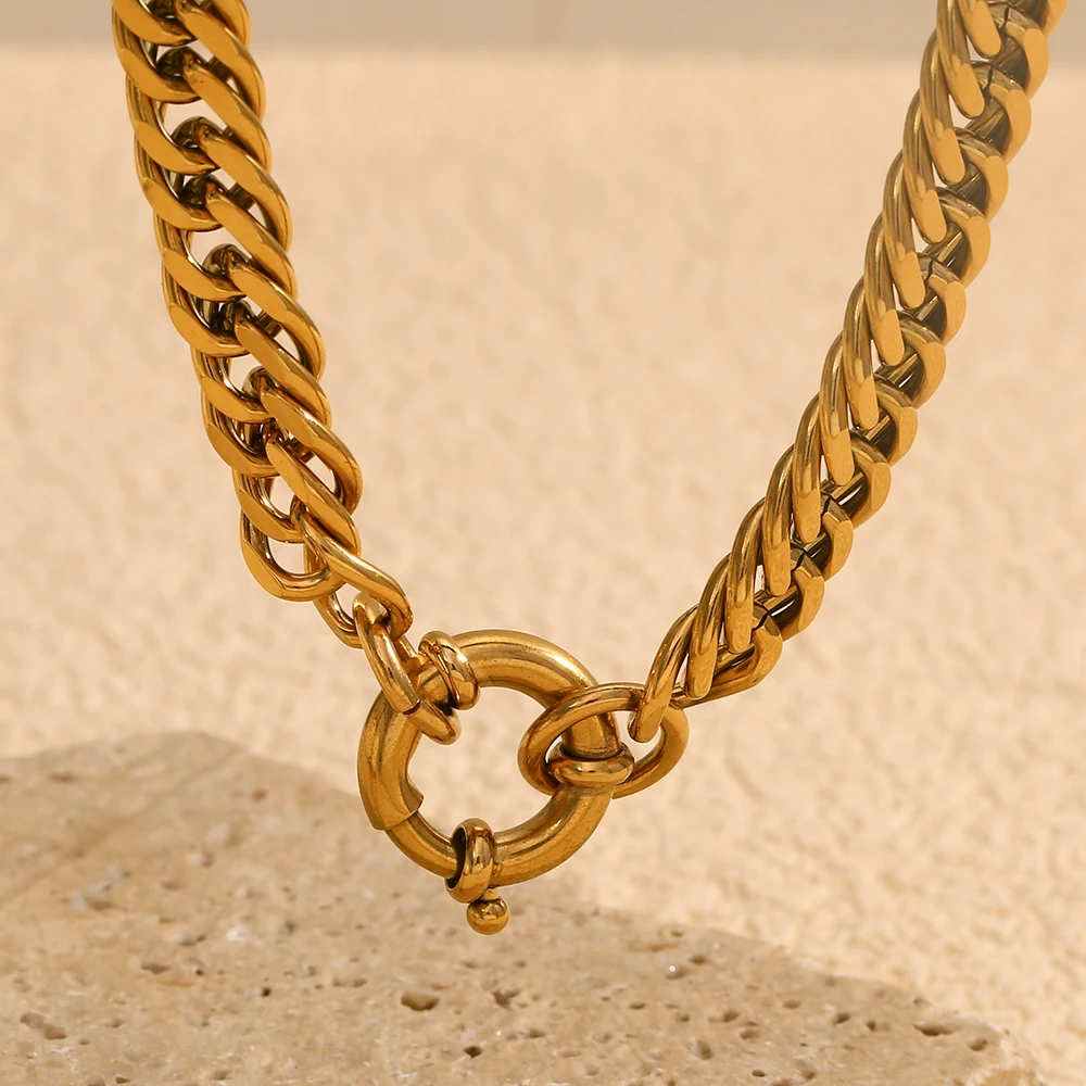 Product Name: Dreamshow OT Clasp Chunky Chain Necklace Statement Jewelry 18k Gold Plated Necklace Waterproof Stainless Steel Jewelry