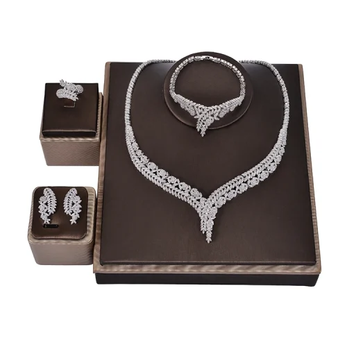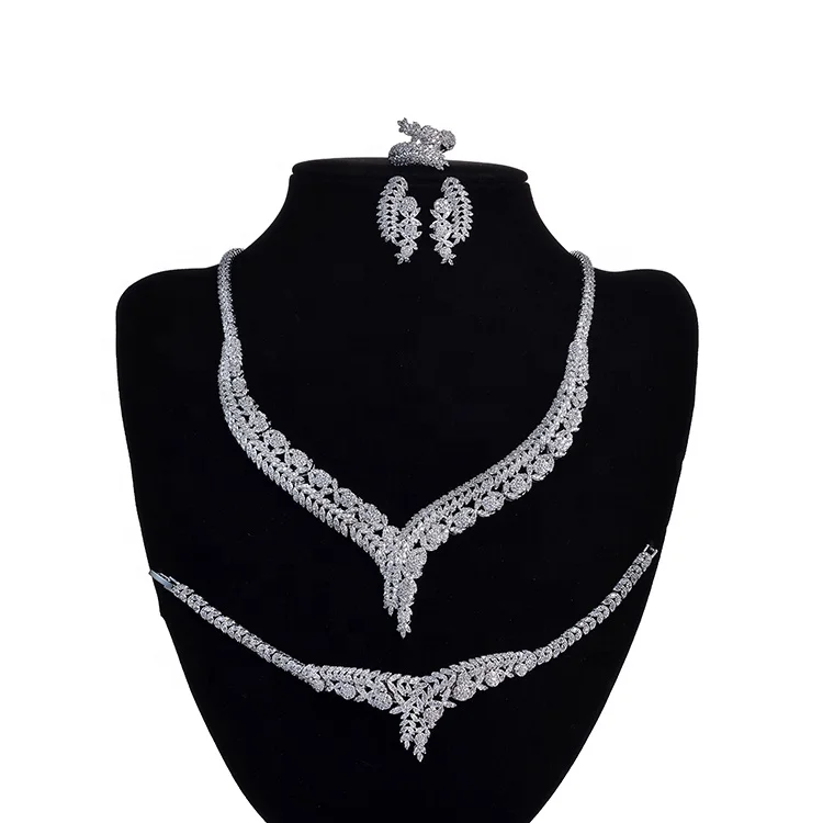 Drop Shipping Luxury Bridal Jewelry Set Simple Classic Cubic Zircon Necklace Wedding Jewelry Sets Exquisite Set CN1677 Bisuteria