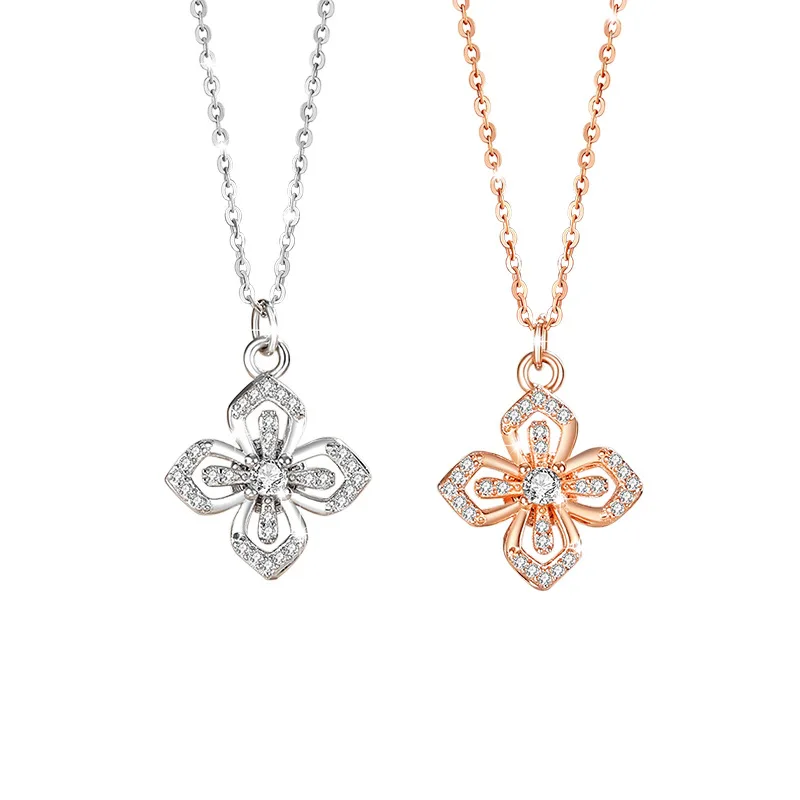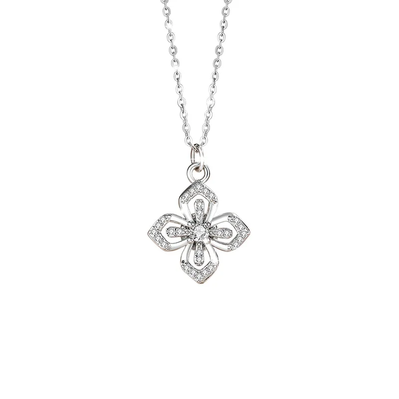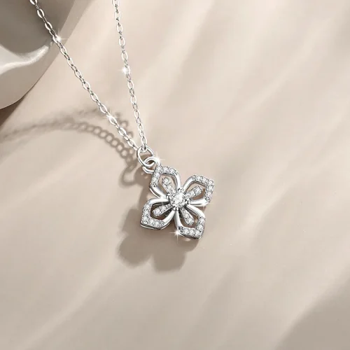Product Name: Dropshipping Fine Jewelry Jeutelis 925 Silver Cubic Zircon Spin Cross Flower Clover Pendant Necklace for Women Parties Gifts