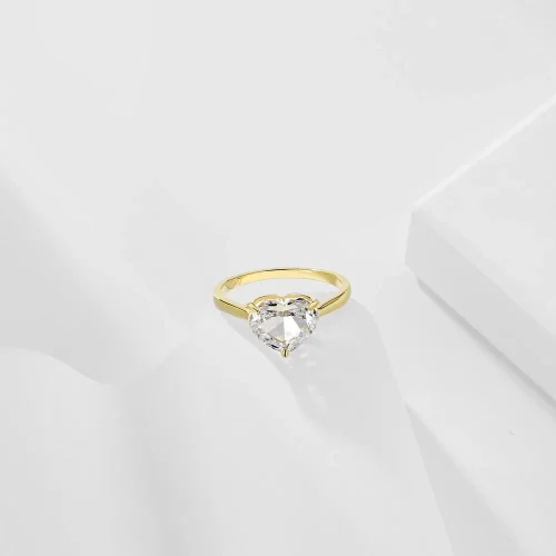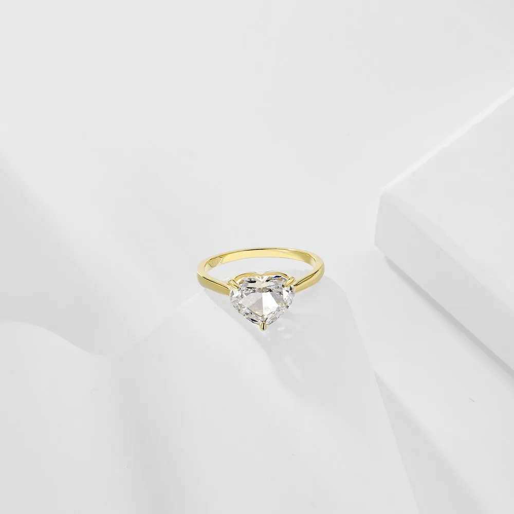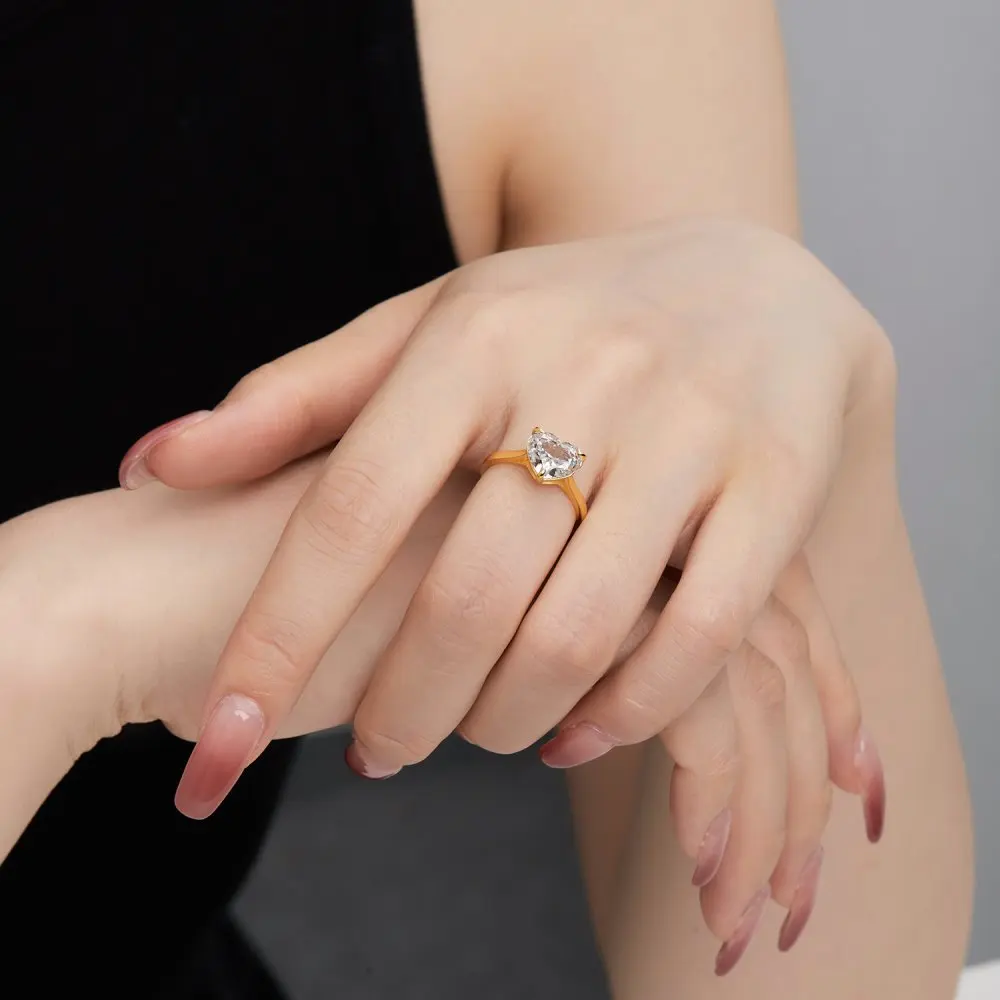 Dylam High Quality 18K Gold Plated Jewellery Stacking Rings Heart Shape5A Cz Cubic Zirconia 925 Sterling Silver Ring for Women