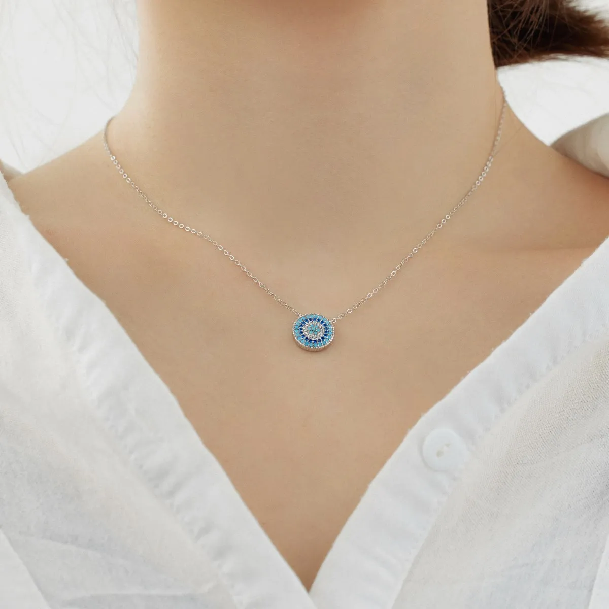 Dylam Popular 925 Sterling Silver Round Blue Lucky Blue Devil Eyes Necklace Pendant Cz Zirconia Necklaces for Women