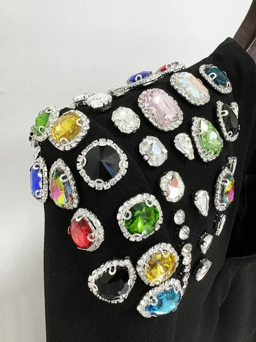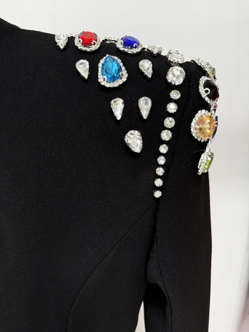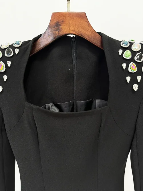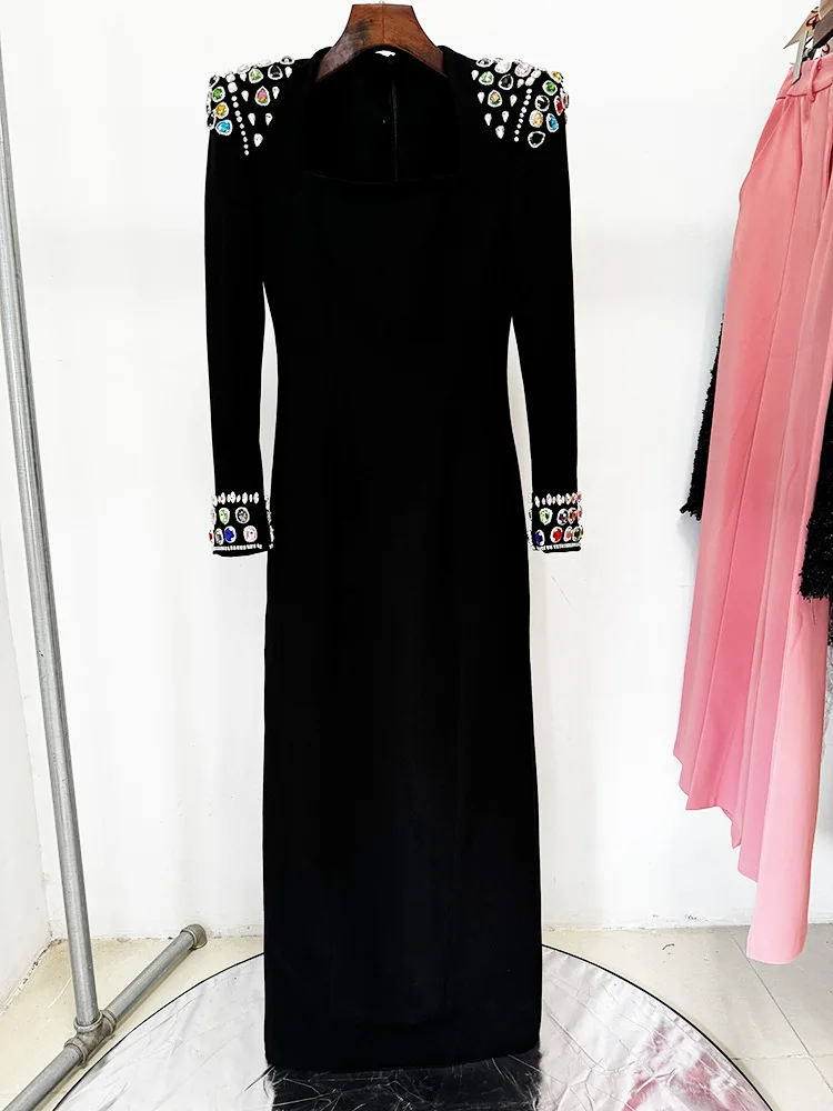 Product Name: Elegant Black Dress 2025 Modest Evening Black Dress Temperament Elegant Heavy Gem Diamond-set Long Sleeve Dubai Women Silm Dress