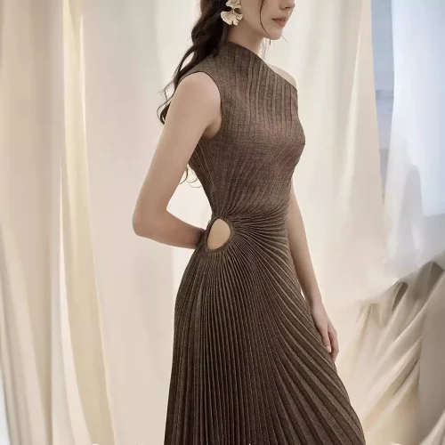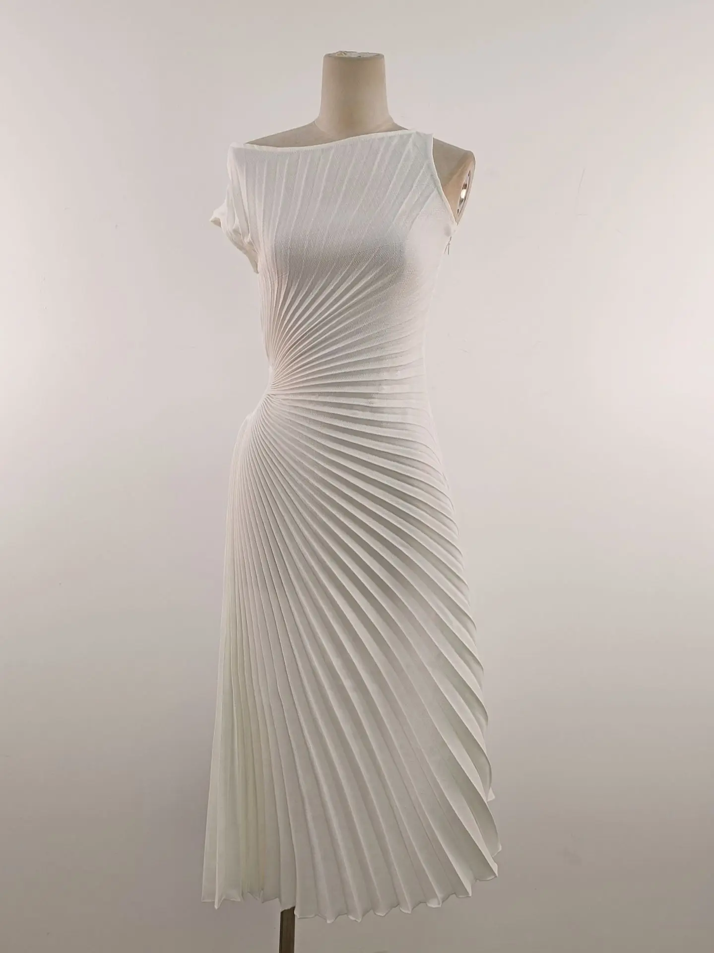 Product Name: Elegant Design Niche Cut Pleated One-Shoulder Dress Long Skirt Waistline Front Digital Washable for Summer Season-Model 30225