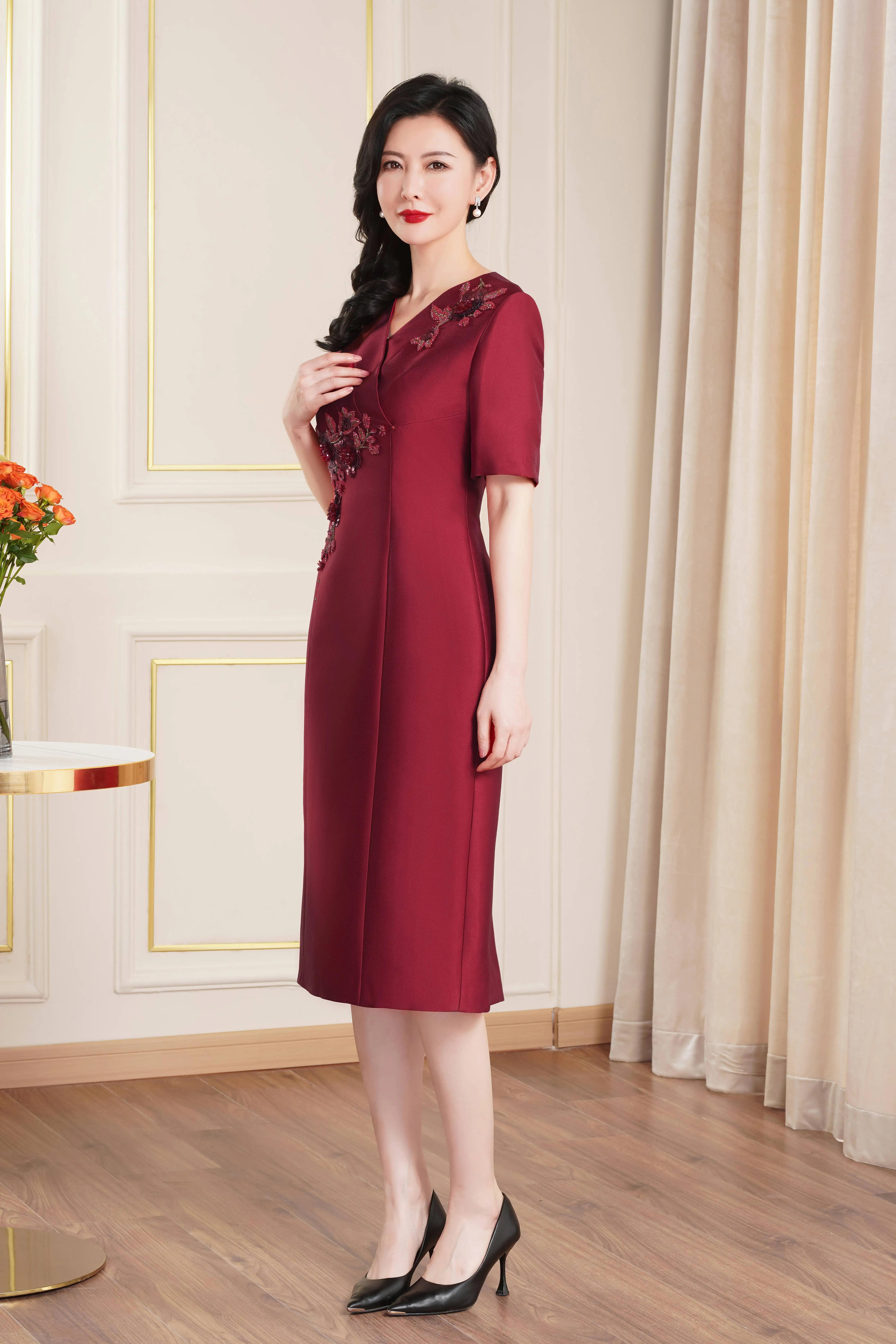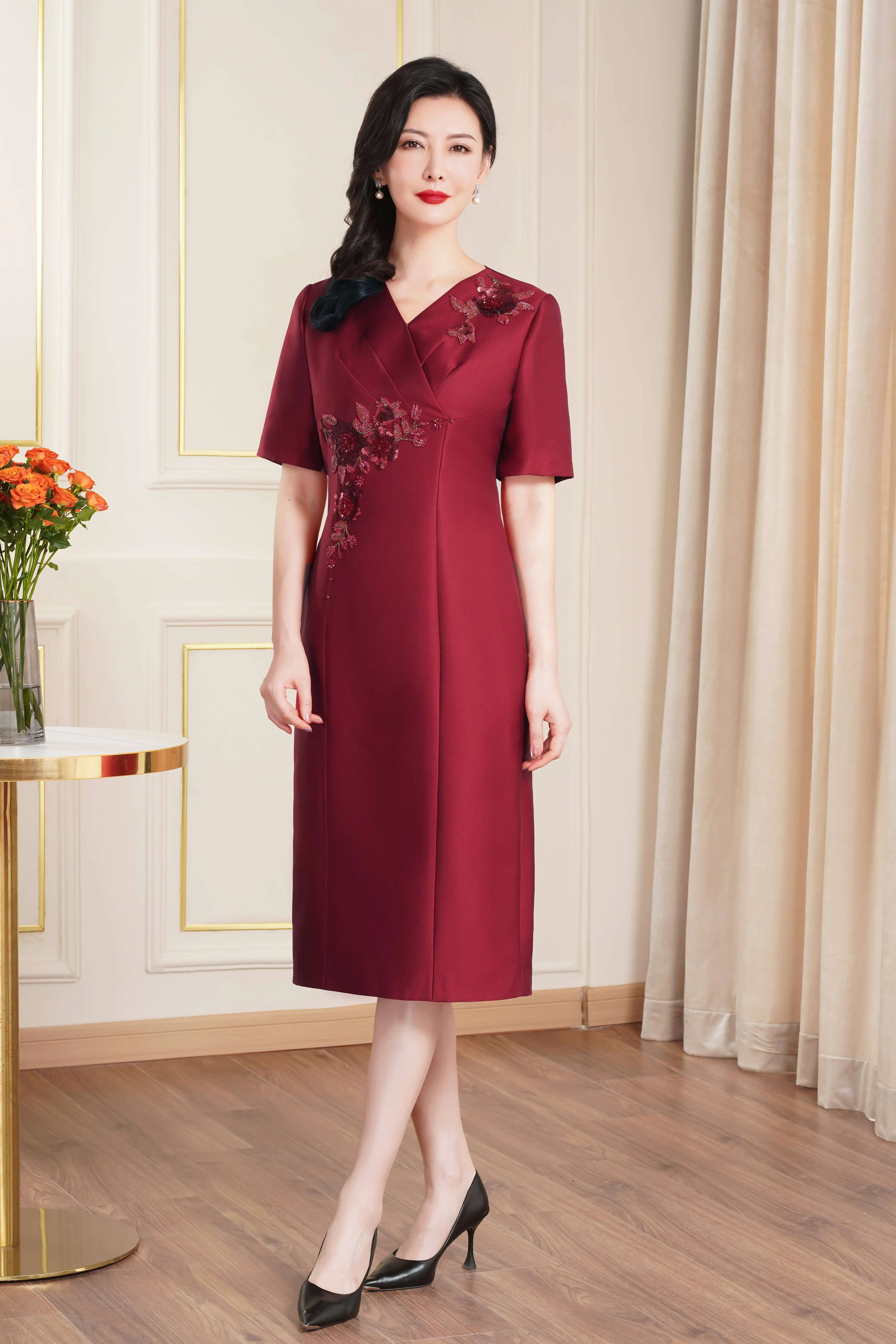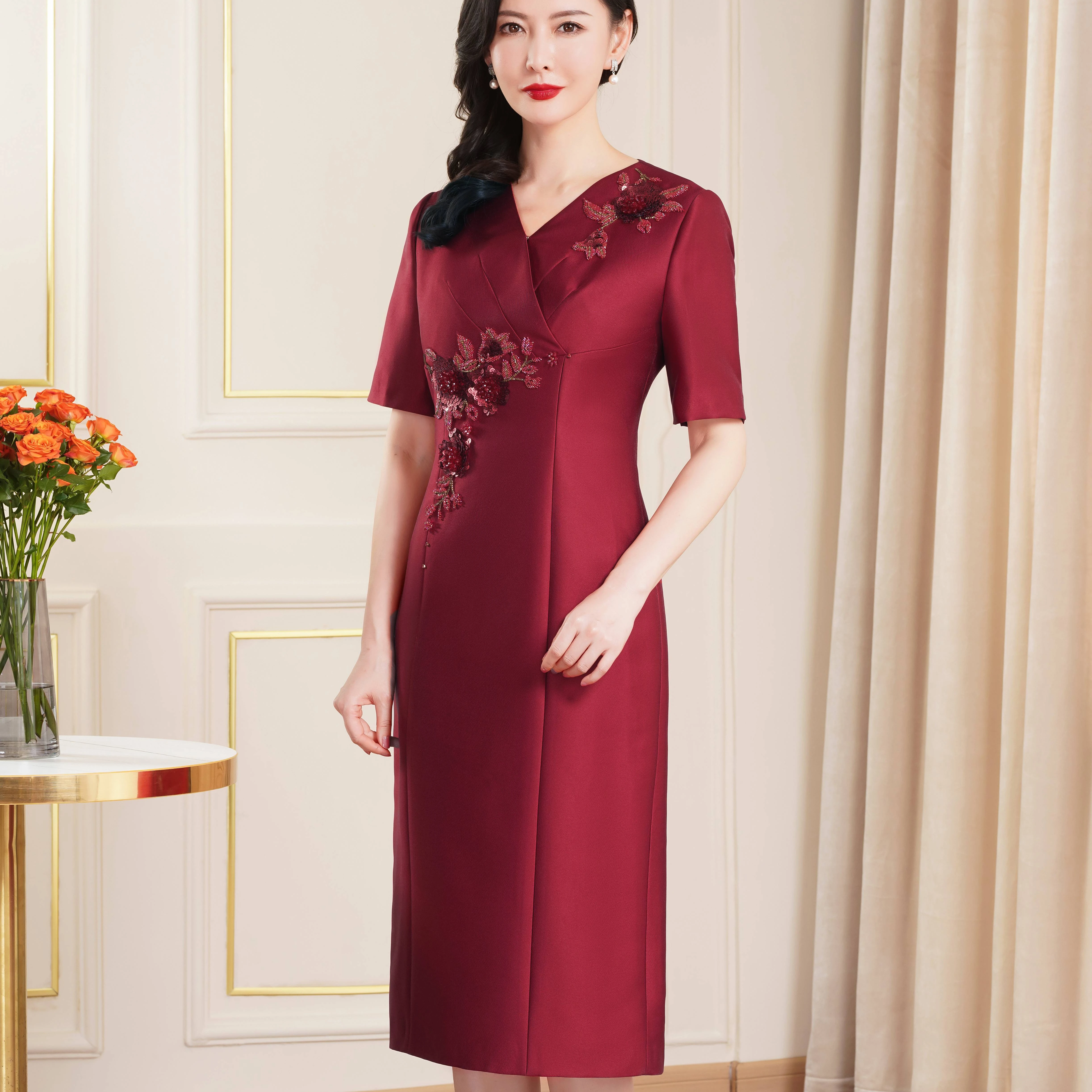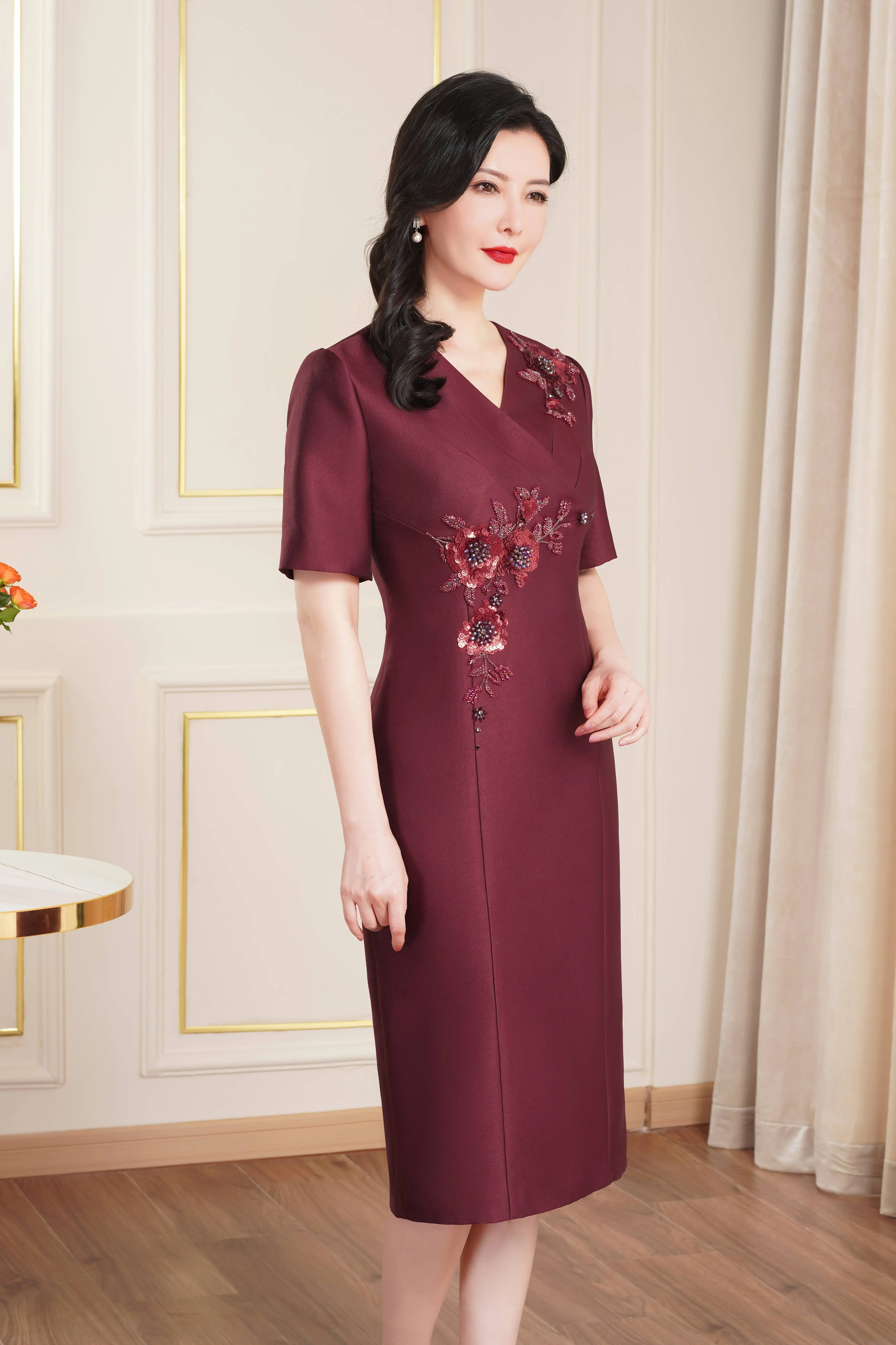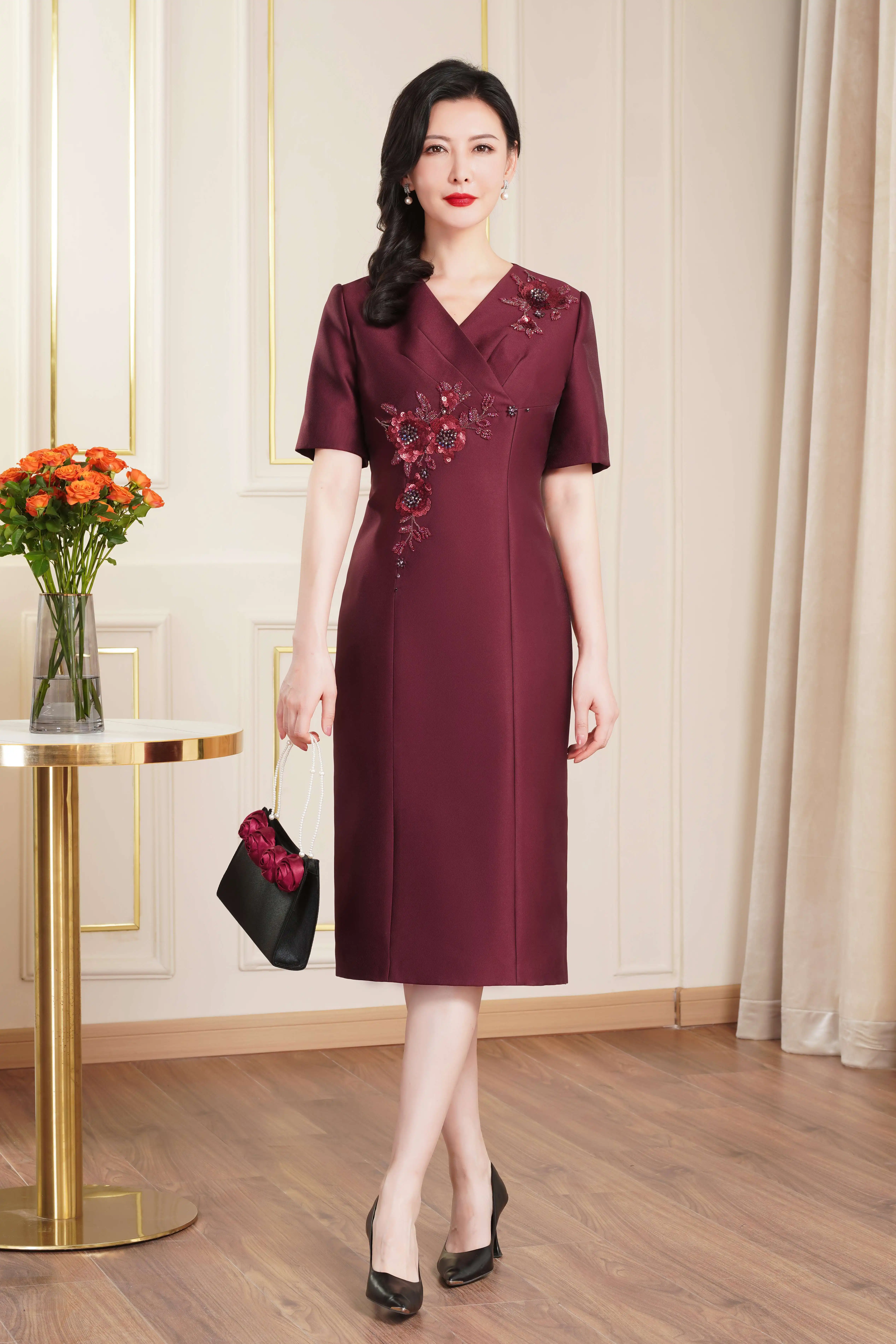 Product Name: Elegant Evening Gown Short Sleeve Wedding Birthday Party Attire Mother Dress for Southeast Asia