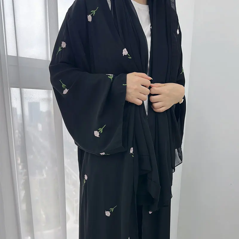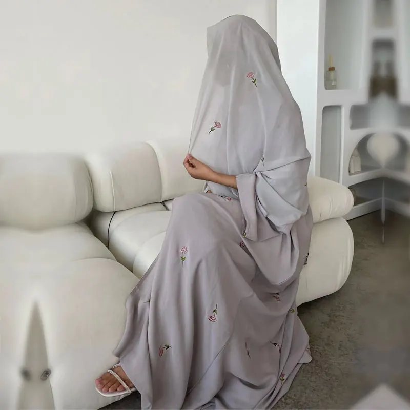 Elegant Versatile Open Robe for Women Autumn/Winter New Style Embroidery Viscose Material Popular XXL Muslim Abaya for Weddings