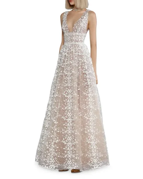 Formal Long Gown Deep V Neck Dinner Party Lace Ball Ladies Evening Dresses