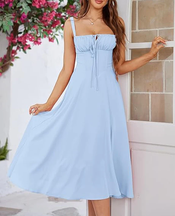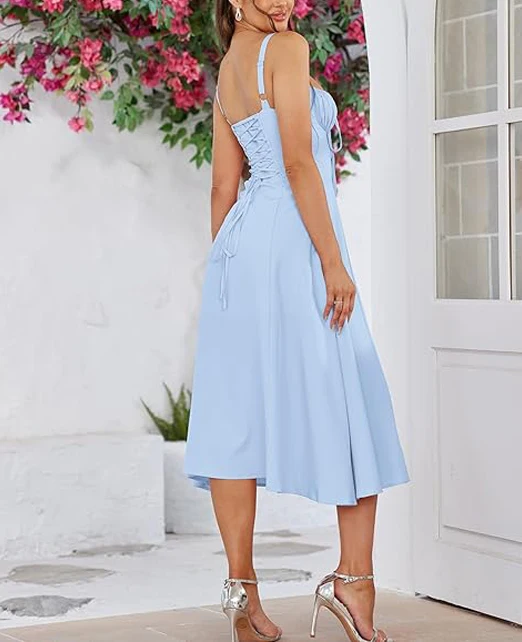 Product Name: High Quality Clothing Manufacturers Women Summer Floral Midi Corset Dress Cotton Slit Lace up Dresses a Line Casual Sundress