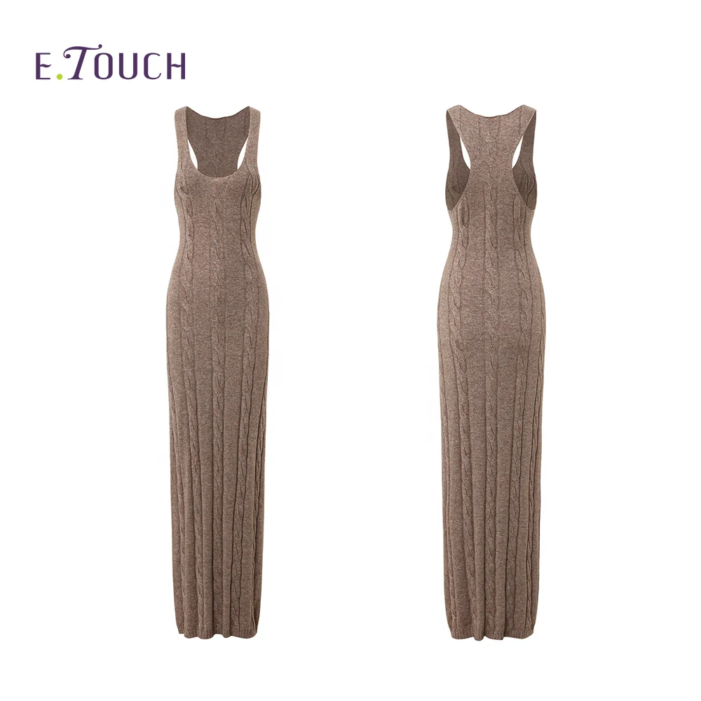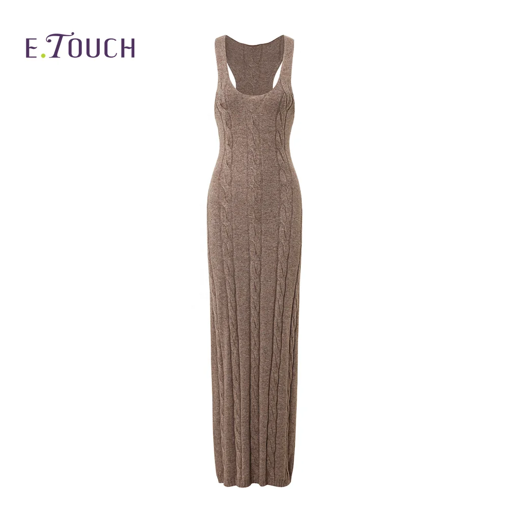 Product Name: High Quality Fashion Fall Casual Sexy Slim Halter Rib Dress With Side Slit Bodycon Brown Halter Knit Sweater Long Dress