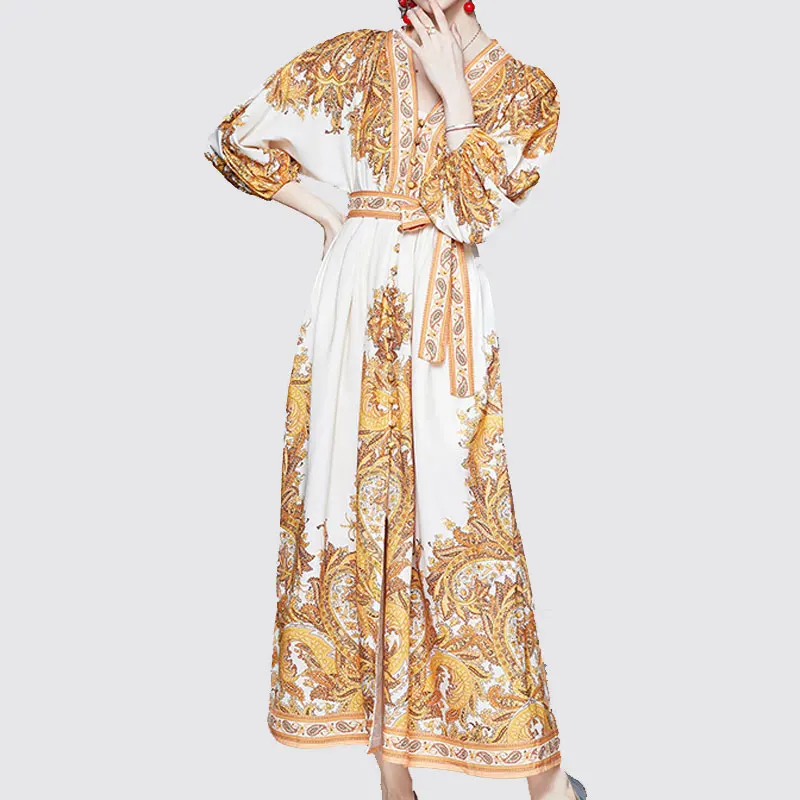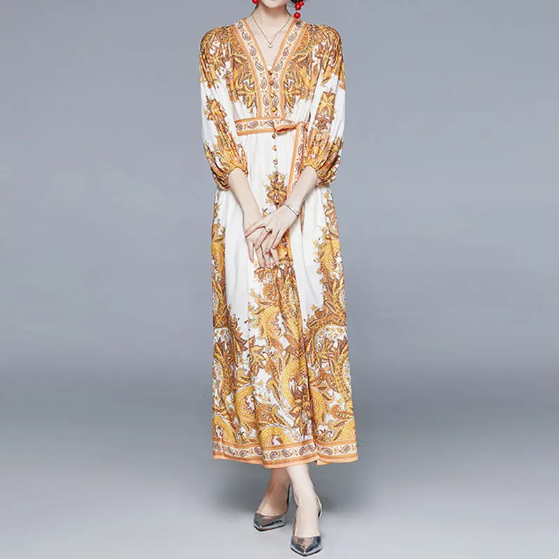 Product Name: ization Summer Linen Midi Luxury Sundress Abstract Floral Print Woman Casual Long Dress
