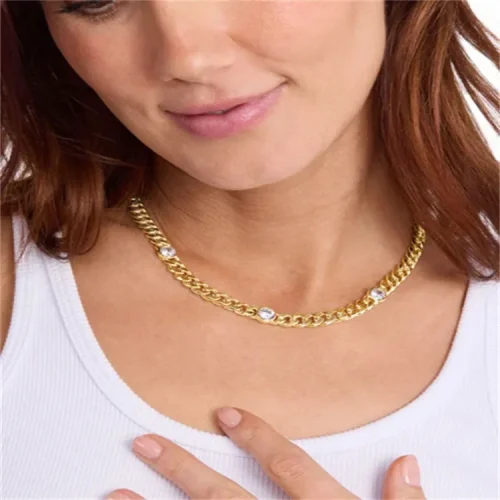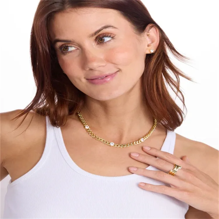 Product Name: Jewellery Ladies Luxury Cubic Zirconia 18K Gold Plated Stainless Steel Bracelet Necklace